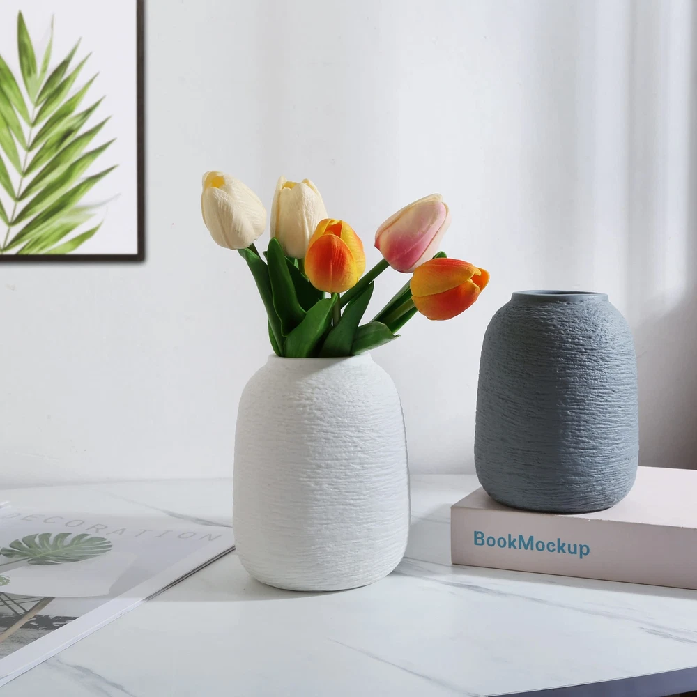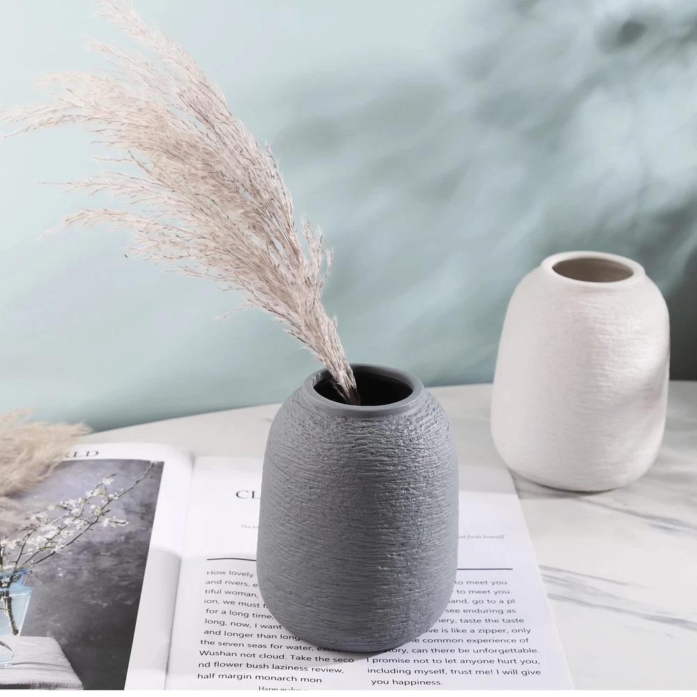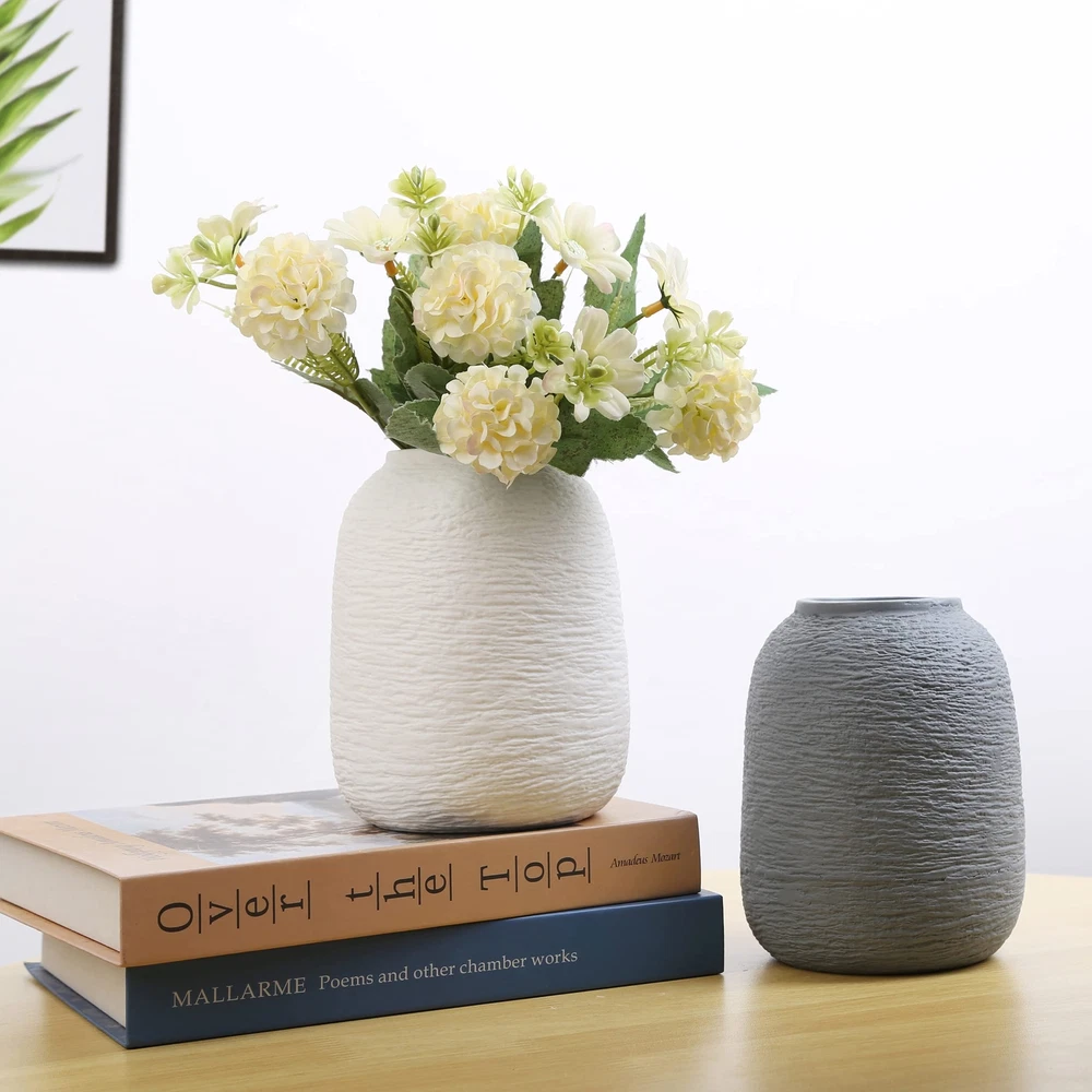 【Minimalist style】: the collision of culture and fashion, the fusion of tradition and modernity, full of cultural heritage and modernity, romantic life needs the embellishment of flowers, and beautiful flowers also need the embellishment of vases, making life romantic and making flowers more beautiful. 【Unique design】: The mouth of the bottle is polished and smooth, which does not hurt your hands. It can easily handle all kinds of flowers and make you love it. The bottle has a matte texture, fresh and elegant, with irregular and regular lines, showing a unique artistic atmosphere. The bottom of the bottle is thick and stable, not easy to pour, and the bottom is polished smooth to avoid scratching the table. 【Best Decoration】: Great for fresh bouquets, dried flowers, colorful silk flowers or flower arrangements. Perfect for home decor, kitchen, bathroom, office, wedding centerpiece, and Best Decoration for friends, family and colleagues. 【Vase Dimensions】: White and Grey Dimensions: The vase measures 4.13L x 4.13W x 5.91H inches. Ceramic vases hold dried flowers or bouquets and can be used in a variety of home settings. We will provide customers with high-quality services. If the product has defects, accidental damage and other problems, please contact us by email, we will provide you with a satisfactory solution in time, please rest assured to buy.