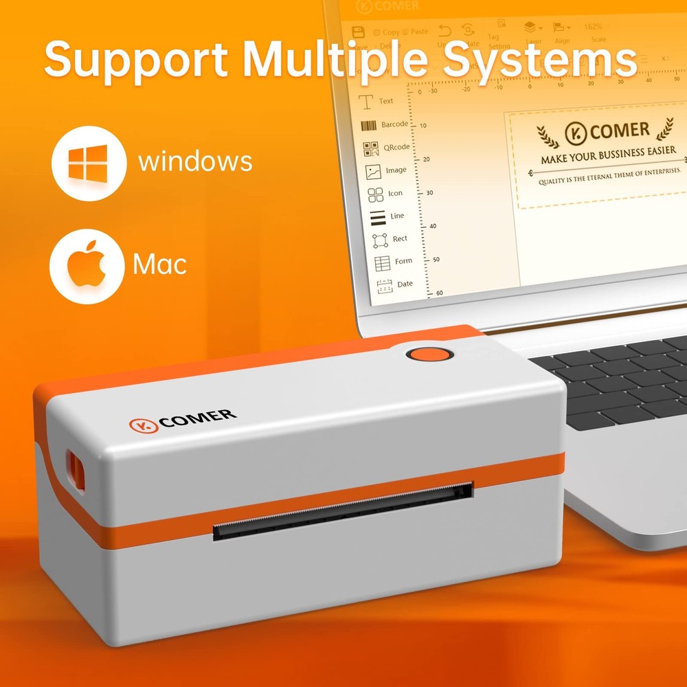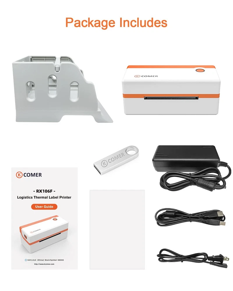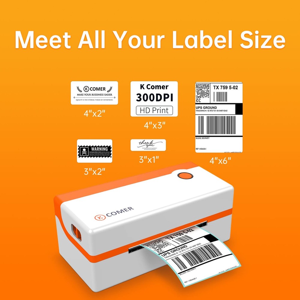 K COMER Thermal Label Printer 4x6 Shipping Label Printer for Small Business & Shipping Package 203dpi 150mm/s for Amazon, Ebay, Shopify, Etsy, UPS, USPS, FedEx, DHL Description Features: COST SAVING & FAST : This desktop label printers uses direct thermal technology to print at 82 Label/min without ink. Used for all label sizes below 4x6'' . K COMER exclusive label software is also presented HIGH SPEED & HIGH DEFINITION : The print head made of K COMER special high temperature resistant material has 15 invention patents, label printer which can perfectly solve the problems of heat generation and unstable work. It can find the best balance between clarity and speed . After optimization, K COMER 203dpi resolution can be clearer than the 203dpi resolution of the same level printer on the market, almost reaching 250dpi resolution. HIGH EFFICIENCY/STABILITY : COMER shipping label printer can automatically capture the label and send it to the printer. And can provide you with the life of printing more than 50,000 label ,We have added a counterweight inside the shipping label printer, Maximize printing stability. ITEMS IN THE BOX :The K Comer thermal printer comes with 1 Printer, 1 Power Cord, 1 Label Holder,1 USB Cable , 1 Quick Start Guide , 20Pcs test label and 1 U Disk(containing the printer driver, installation guide, setup guide, and user manual).Support e-mail, social communication tools, and even the remote desktop operation support you need, and provide product failure maintenance and replacement services within one year. Product Details: Brand: K COMER Connectivity Technology: USB Printing Technology: Thermal-150MM/S-203dpi Special Feature: Portable, High Speed, No ink No toner, Auto Recognition, Easy to Setup Color: white and orange Model Name: RX-106F Printer Output: Monochrome Max Printspeed Monochrome: 72 ppm Item Weight: 1.7 Kilograms Product Dimensions: 4.72"D x 8.66"W x 4.25"H Controller Type: iOS Printer Media Size Maximum: 4.1 x 9.5 inch Included Components: Printer, Power Cord, Label Holder, USB Cable, Quick Start Guide, Test Labels, U Disk Print media: Labels Scanner Type: 150mm/s Max Input Sheet Capacity: 1 Compatible Devices: PC, Laptops Sheet Size: 4x6 Inches Dual-sided printing: No Duplex: Automatic Hardware Interface: USB Resolution: 203dpi Additional Printer functions: Print Only Control Method: App Model Series: RX Specific Uses For Product: business, small business UPC: 791759534464 Product Dimensions: 8.66 x 4.72 x 4.25 inches Item Weight: 3.74 pounds Item model number: RX106F Is Discontinued By Manufacturer: No Date First Available: January 16, 2021 Manufacturer: K COMER Country of Origin: China Handling We will ship all orders within 3 business days of payment. Delivery We do not ship outside of the Continental US. Feedback We take our reputation seriously, we buy and sell online, so we understand the value of trust. If you are unsatisfied with your order, please contact us and we will work with you to resolve it to your satisfaction.