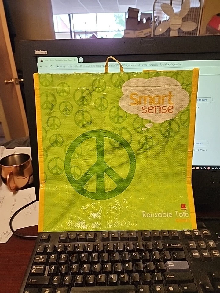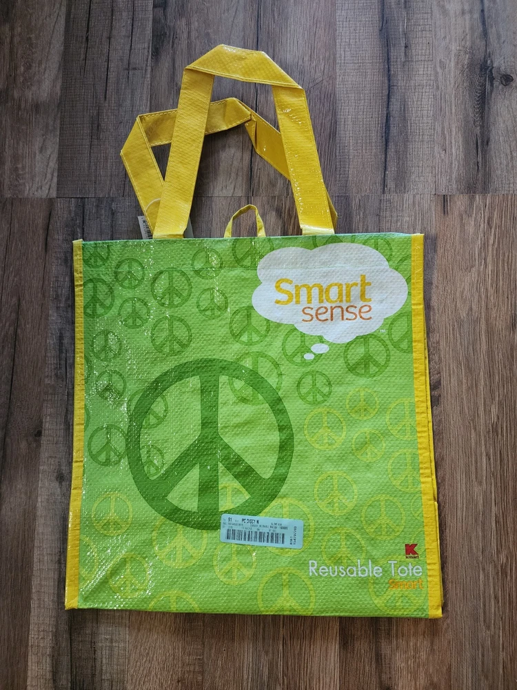 This K-Mart Smart Sense reusable tote bag is a must-have for any stylish and eco-conscious shopper. With its spacious medium size, it is perfect for carrying all your groceries and essentials. The bag features a trendy check pattern in multicolor and is made of high-quality nylon and canvas materials, ensuring durability and longevity. The bag is foldable and dishwasher safe, making it easy to store and clean. It has a height of 14 inches and a width of 8 inches, providing ample space for your items. The tote bag is perfect for any occasion and is sure to impress with its art deco style. Get yours today and make a statement while reducing your environmental impact!