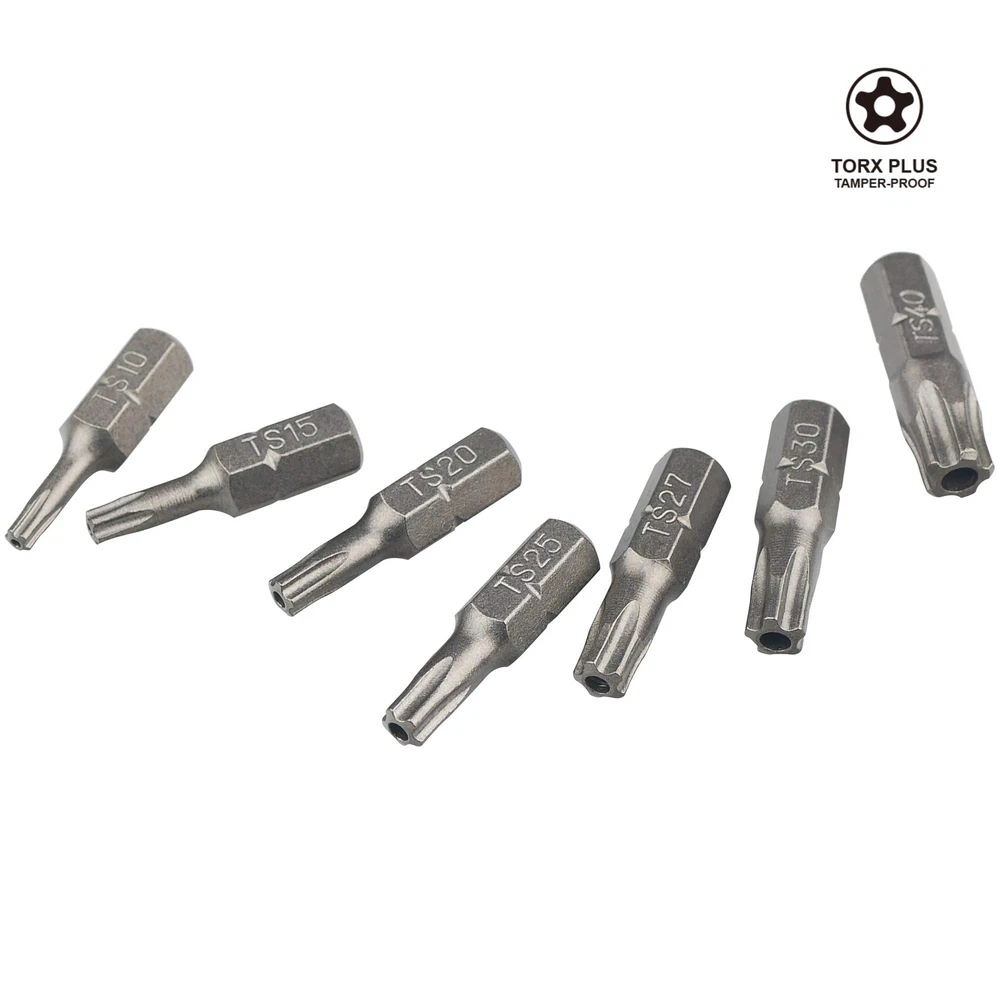 Five-point head and hole for security fasteners This set matches for most standard tamper resistance star 5-point screws as opposed to the common 6-point Mercedes, Porsche, Volvo some Ford and Chrysler cars/trucks use 5-point fasteners of transmissions, air sensor or injector pumps 1/4-inch shank hex bits in sizes: TS10, TS15, TS20, TS25, TS27, TS30, TS40