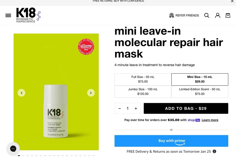 K18 Leave-In Molecular Repair Hair Mask 15 ml. Hair Mask 2 Pack. New without box Authentic with fresh batch code Retails $29 each