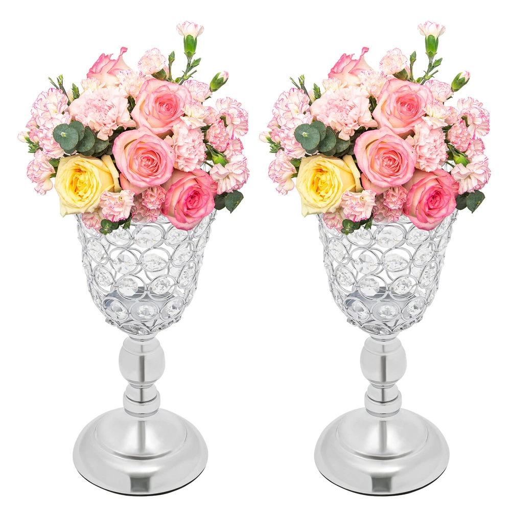 Specifications Color: Silver Style: Elegant Material: Iron, K9 Crystal, EVA Process: Electroplating Mounting Type: Tabletop Assembly Required: No Number of Pieces: 2 Base Diameter: 11cm/4.33in Each Top Diameter: 14cm/5.51in Each Product Height: 25.5cm/10.04in Package Size: 31*25*15cm/12.2*9.84*5.91in Gross Weight: 1.5kg/3.31lbs Net Weight: 1kg/2.2lbs Package Included 2* Wedding Flower Vases welcome Description Description As a wedding day approaches, it is essential to pay attention to the decorations, including the arrangement of fresh or artificial flowers. At a time when couples seek to create a romantic and enchanting atmosphere, wedding flower vases have become a popular choice. These elegant vases have been given an electroplating treatment to ensure their longevity and are ideal for decorating a wide range of spaces. Key Features Build to Last: The product mainly made of K9 crystal and iron with the electroplating process boasts high hardness, corrosion resistance, rust resistance, wear resistance , and a long service life. Elegant Appearance: Carefully designed trumpet shape, elegant silver color, and beautiful crystal beads give this product a pleasing appearance, paired with beautiful bouquets(not included), making the table decoration more attractive and unique, brightening up your wedding, and leaving impressions on your guests. Suitable Size: The appropriate base(4.33 inches) and height(10.04 inches) make this product an excellent decoration for placing on the table. Cost-effective: This set includes 2 pieces to keep your tables from monotonous. You can also purchase more to meet your needs. Moreover, they are reusable, saving you the cost of replacing other decorations next time. Easy to Install: A full range of accessories and simple construction allow you to install and use this product easily and quickly. Simple Clean-up: It has a smooth surface and a simple structure, so you only need to wipe the dust off its surface with a towel(not included). Ideal Gift: Its gorgeous appearance makes it an excellent gift for your friends, families, and colleagues to decorate their rooms or event sites. Protective Package: To prevent the product from being damaged during transportation, we packed it with bubble bags to protect your products to the maximum extent possible. Buy with Confidence: We stand behind all our guests and look forward to assisting you with your purchase. It is our pleasure to answer your confusion and questions. The end of the story between us is not "we sell and you buy". Details Sturdy Base: The 4.33-inch round base with an EVA pad gives stable support, preventing it from easily sliding or wobbling. Large Opening: Its 5.51" diameter can hold more flowers and artificial flowers(not included) for more beautiful arrangements. Application It can be a nice centerpiece decoration for weddings, Christmas, Thanksgiving Day, New Year, Valentine's Day, parties, dinners, holidays, birthdays, anniversaries, or other special events. It is suitable for homes, living rooms, dining rooms, bedrooms, tabletops, dining tables, shelf decors, offices, etc. Specifications Color: Silver Style: Elegant Material: Iron, K9 Crystal, EVA Process: Electroplating Mounting Type: Tabletop Assembly Required: No Number of Pieces: 2 Base Diameter: 11cm/4.33in Each Top Diameter: 14cm/5.51in Each Product Height: 25.5cm/10.04in Package Size: 31*25*15cm/12.2*9.84*5.91in Gross Weight: 1.5kg/3.31lbs Net Weight: 1kg/2.2lbs Package Included 2* Wedding Flower Vases Notes Please carefully check if the size is suitable before placing an order. Flowers are not included in the package. The product adopts a hollow design and cannot hold water. Please allow the slight color difference caused by the shooting light and 1-3cm error due to manual measurement, and make sure you do not mind before you order. Payment Delivery details Terms of sales About us Contact us Payment We accept ebay payment 。 Fees such as import duties, taxes are not included in the item price or shipping costs. These charges are the buyer's responsibility. Delivery details Shipping: 2-9 working days to: USA Terms of sales We maintain high standards of excellence and strive for hundred percent customer satisfaction. Feedback is very important to us. We hope that you contact us immediately before you give neutral or negative feedback, so that we can address your concerns. It is impossible to address issues if we do not know about them! About us Your satis faction is our ultimate goal. We work hard to earn your trust and future business. Our certified technicians have tested each item before shipping. The unit comes with 1 year limited warranty on all manufacturing defects. a) If you receive a defective item, you may return it or ask for a discount. Please contact us within 14 days after you receive the package. b) What you returned must be intact and in its original packaging as re? u. Customer is responsible for shipping costs of the returned item. c) We will cover the cost of shipping back t with the shipping rate indicated in the registration page. We will send you a new unit or refund the full payment you paid. Thank you. Contact us Business Hour Business Hour: Monday To Friday: 8:30 AM to 5:00 PM (Beijing China time) Due to time zones, our reply to your questions may not be immediately. But within above working time, we will reply your email within 24 hours. If it's non-workdays, please kindly be patient and wait till Monday. Please contact us with ebay message. Please feel free to contact us if you have any questions. Monday To Friday: 8:30 AM to 5:00 PM (Beijing China time) Due to time zones, our reply to your questions may not be immediately. But within above working time, we will reply your email within 24 hours. If it's non-workdays, please kindly be patient and wait till Monday. Please contact us with ebay message. Please feel free to contact us if you have any questions.