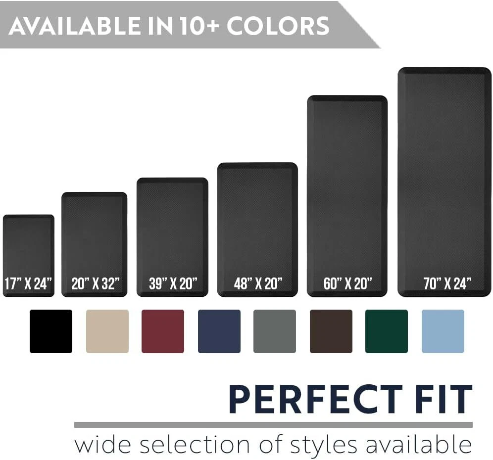 KANGAROO Thick Ergonomic Anti Fatigue Mats for Kitchen Floor, Cushioned Black Product Details Color: Black Brand: KANGAROO Special Feature: Supportive, Durable, High Density Foam, Stain-Resistant, Thick Pattern: Solid Product Care Instructions: Wipe with Damp Cloth Item Thickness: 0.75 Inches Product Dimensions: 32"L x 20"W x 0.75"Th UPC: 019962470158 Manufacturer: Hills Point Industries, LLC Number of Items: 1 Item Weight: 2.99 pounds Country of Origin: China Item model number: 8541943187 Is Discontinued By Manufacturer: No MaterialShape: High Density FoamRectangular THICK AND SUPPORTIVE CUSHIONING: extra thick, three quarter inch foam mat is extremely comfortable and engineered to help keep you supported; premium foam inner layer for strong rebound and maximum support; your feet will thank us later HELPS RELIEVE PRESSURE AND FATIGUE: high density foam construction provides superior ergonomic support to help keep you comfortable; antifatigue mats can help to relieve pressure and reduce fatigue throughout the day WATERPROOF AND STAIN RESISTANT TOPSIDE: featuring a waterproof and stain resistant textured topside for quick and easy cleaning; scratch resistant surface is durable for daily use and even pet friendly USE AT HOME OR WORK: perfect for anyone who stands for long periods of time at home or work; great rug for in front of kitchen counters, laundry rooms, standing desks, workspaces, etc; ideal for professional use in locations such as hair salons, restaurants and anywhere all day comfort is essential; stylish diamond texture blends seamlessly with any decor LONGLASTING SUPPORT: designed for long term use with high density foam and a textured backing that will not bottom out over time; premium strength materials offer long lasting support; mat measures 32 inches by 30 inches /! WARNING: Prevent Slipping & Tripping – This mat is NOT slip-resistant. Wipe up water that gets on or under mat. If mat edges curl, discontinue use. For indoor use only.