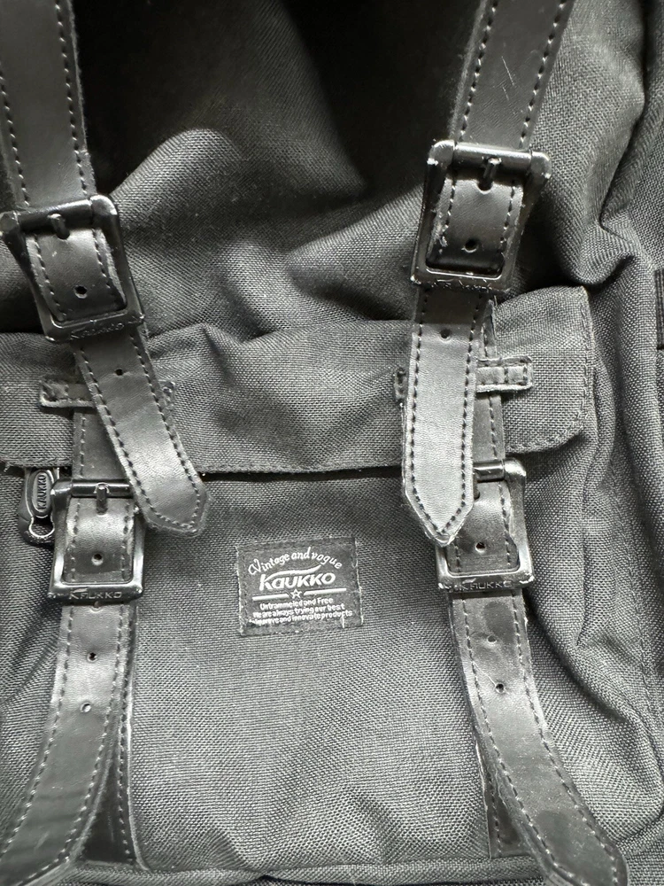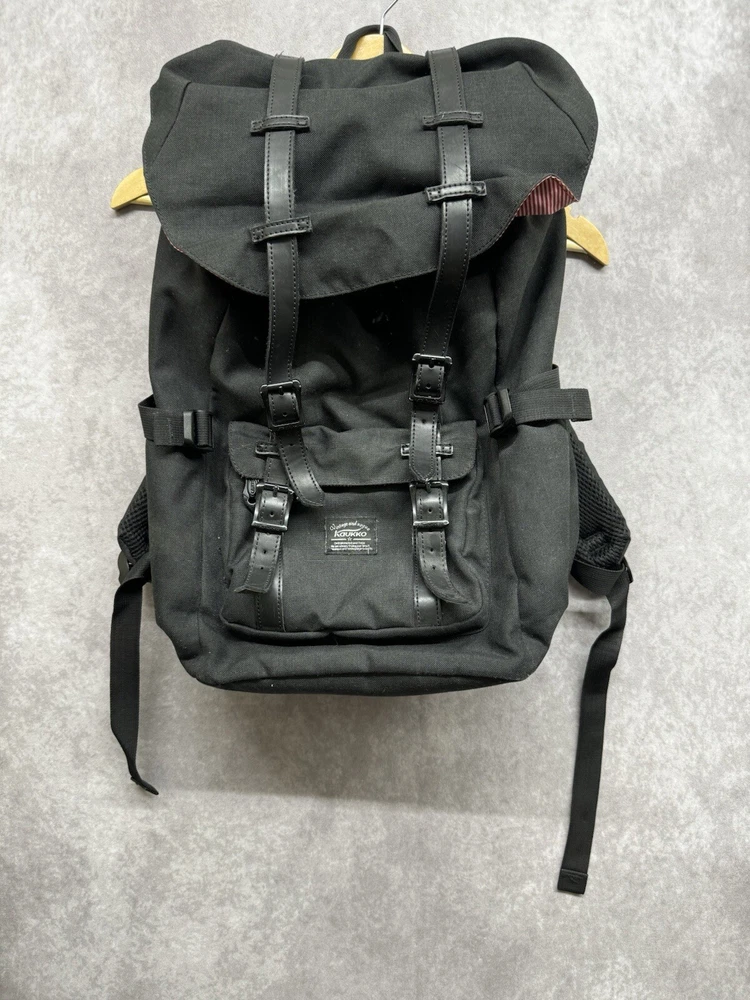 KAUKKO Canvas Flap Backpack - Black Satchel Laptop Carry Bag Hiking Camping. Condition is Pre-owned. Shipped with USPS Ground Advantage.