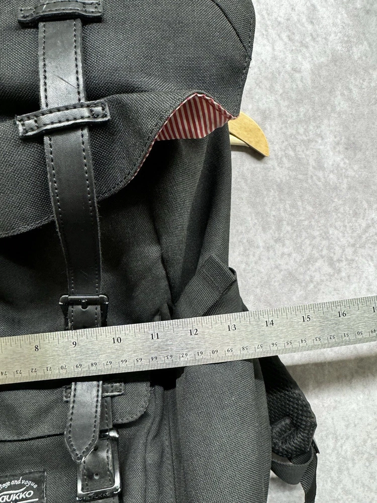 Bag Height: 18 in Style: Backpack Department: Unisex Adults Vintage: No Color: Black Size: Large Handmade: No Hard/Soft: Soft Closure: Buckle, Drawstring, Magnetic Brand: KAUKKO Pattern: Solid Occasion: Casual Handle Style: Shoulder Strap Fabric Type: Canvas Theme: Art, School, Sports, Outdoors, Travel Character: Black Lining Material: Fabric Material: Canvas Features: Laptop Sleeve/Protection, Adjustable Straps Bag Width: 11 in Bag Depth: 6 in Personalize: No