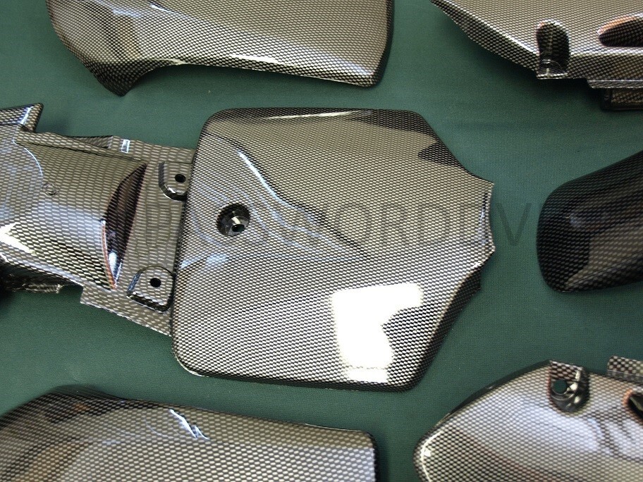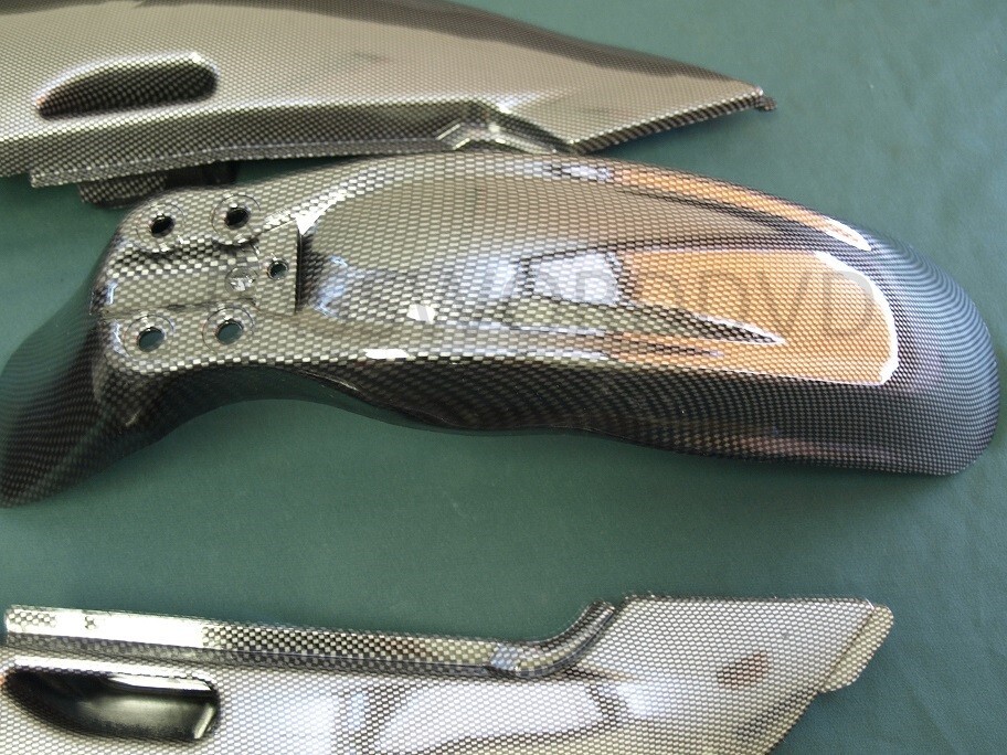 CARBON FIBER STYLE PLASTIC FENDER FAIRINGS KIT FOR KAWASAKI DIRT BIKES FITS: KAWASAKI KLX110 DRZ110 KX65 AND SUZUKI RM65 MODELS CONDITION: BRAND NEW COLOR: CARBON FIBER STYLE. (NOT ACTUAL CARBON FIBER) INCLUDES: FRONT AND REAR FENDERS, NUMBER PLATE, AND SIDE SHROUDS AS PICTURED PROVIDED