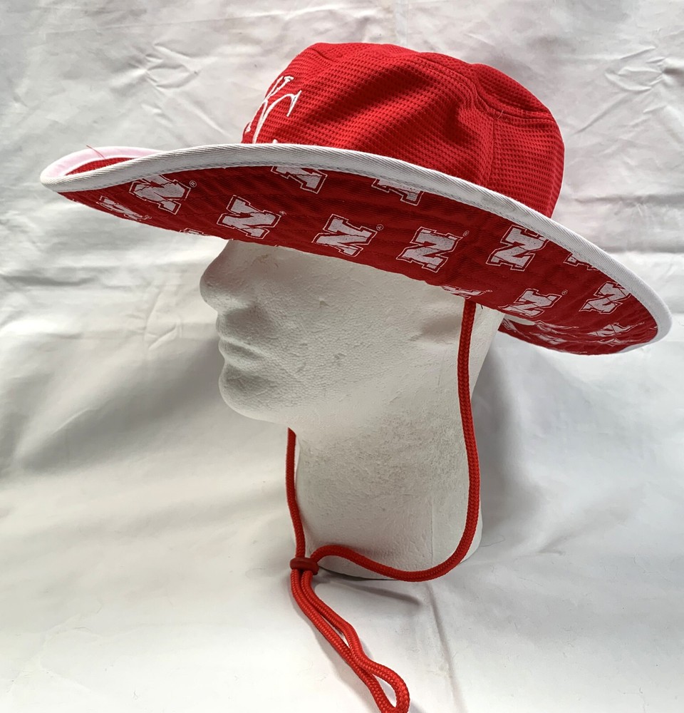 KC/Nebraska boonie hat 100% acrylic Outside has KC embroidered Underneath has N (Nebraska) logo Adjustable chin strap Looks unworn