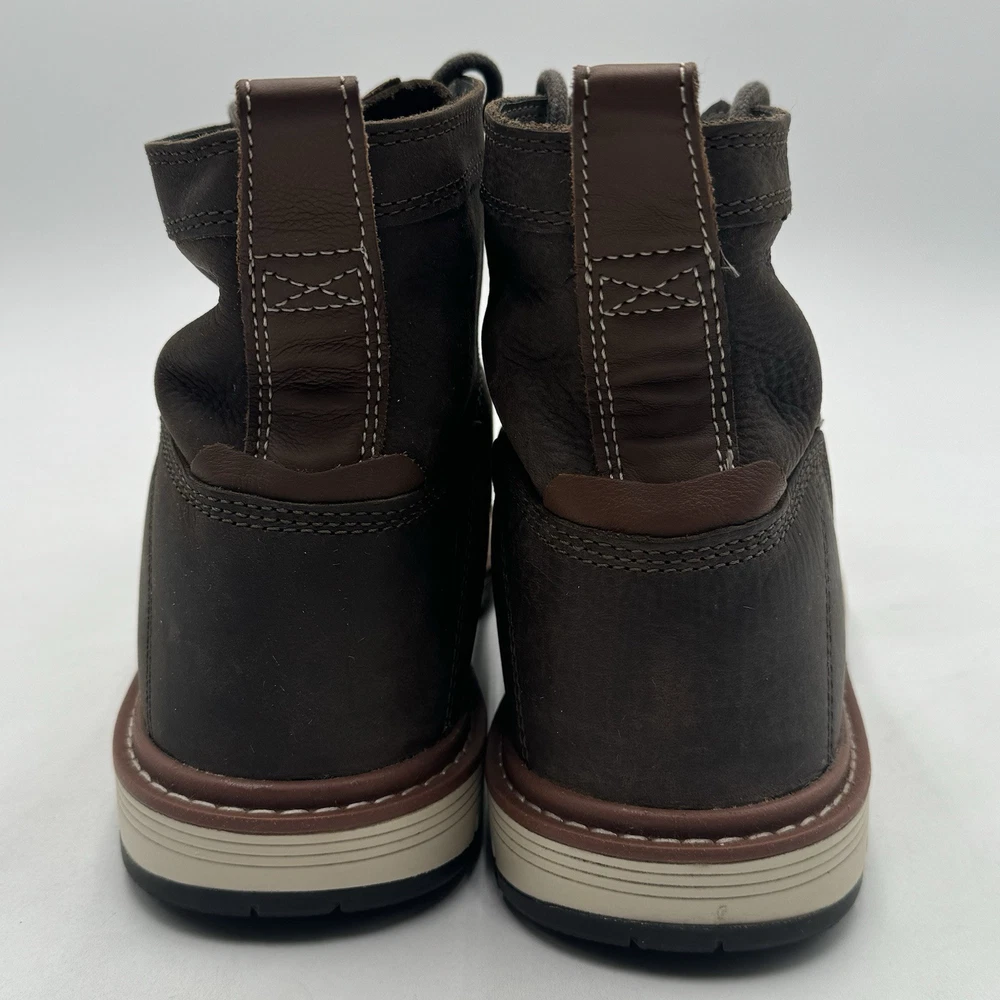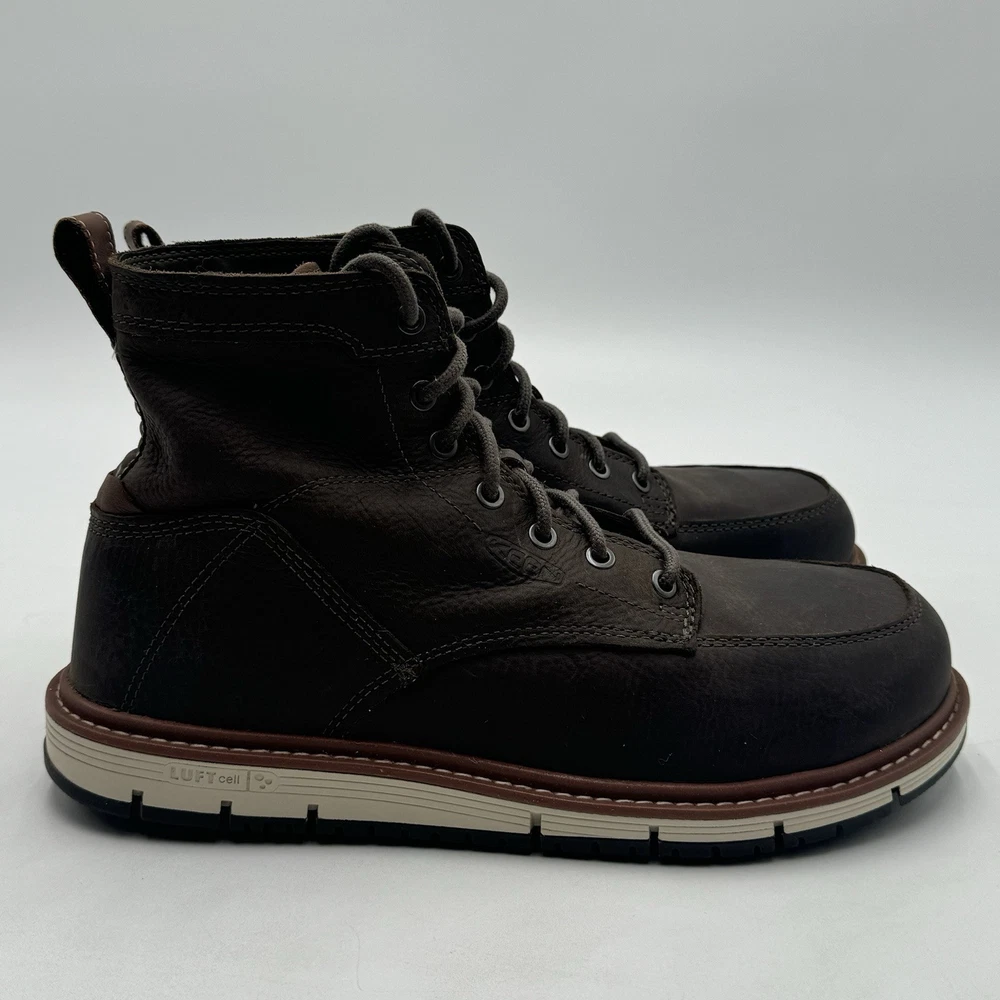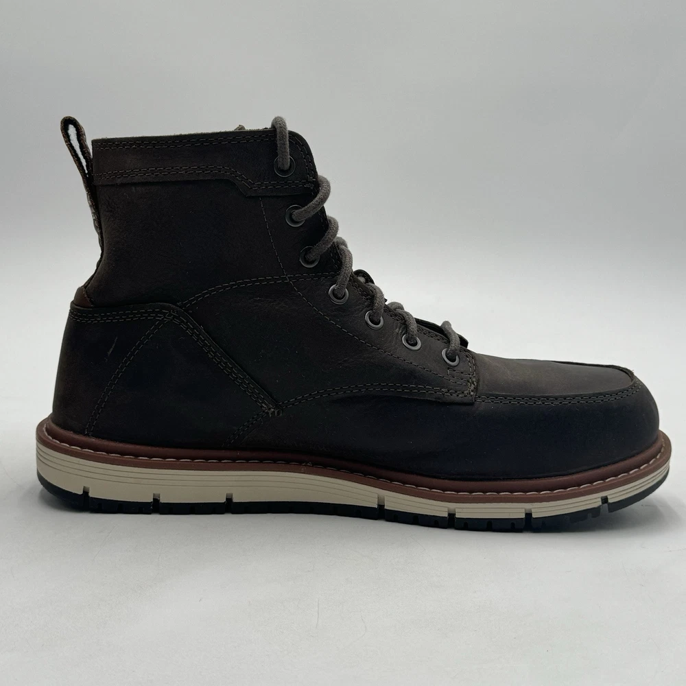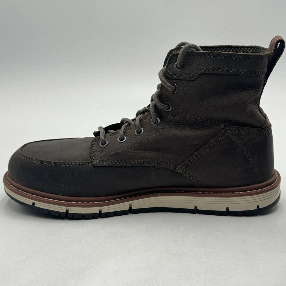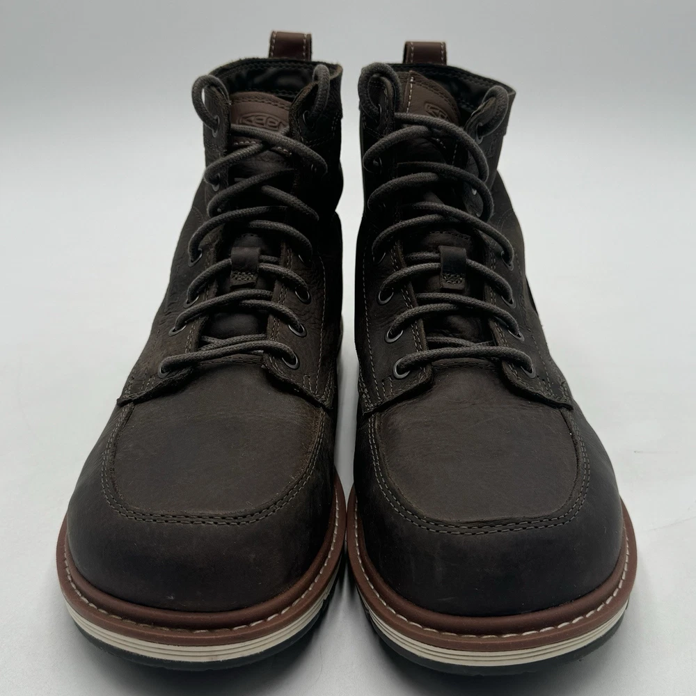 Keen San Jose 6” Work Boots Falcon/Caramel Cafe Crafted for durability and comfort, these KEEN Men's San Jose 6'' Waterproof Aluminum Toe Work Boots are a reliable choice for those in need of sturdy footwear. The brown boots come in size 10.5 with a medium width, ensuring a snug yet comfortable fit for the majority of men's foot sizes. Designed to meet the demands of rigorous work environments, these boots feature a waterproof membrane that keeps your feet dry in wet conditions, and an aluminum toe cap that offers superior protection. Ideal for various industries, these boots are a practical addition to any professional's safety gear.
