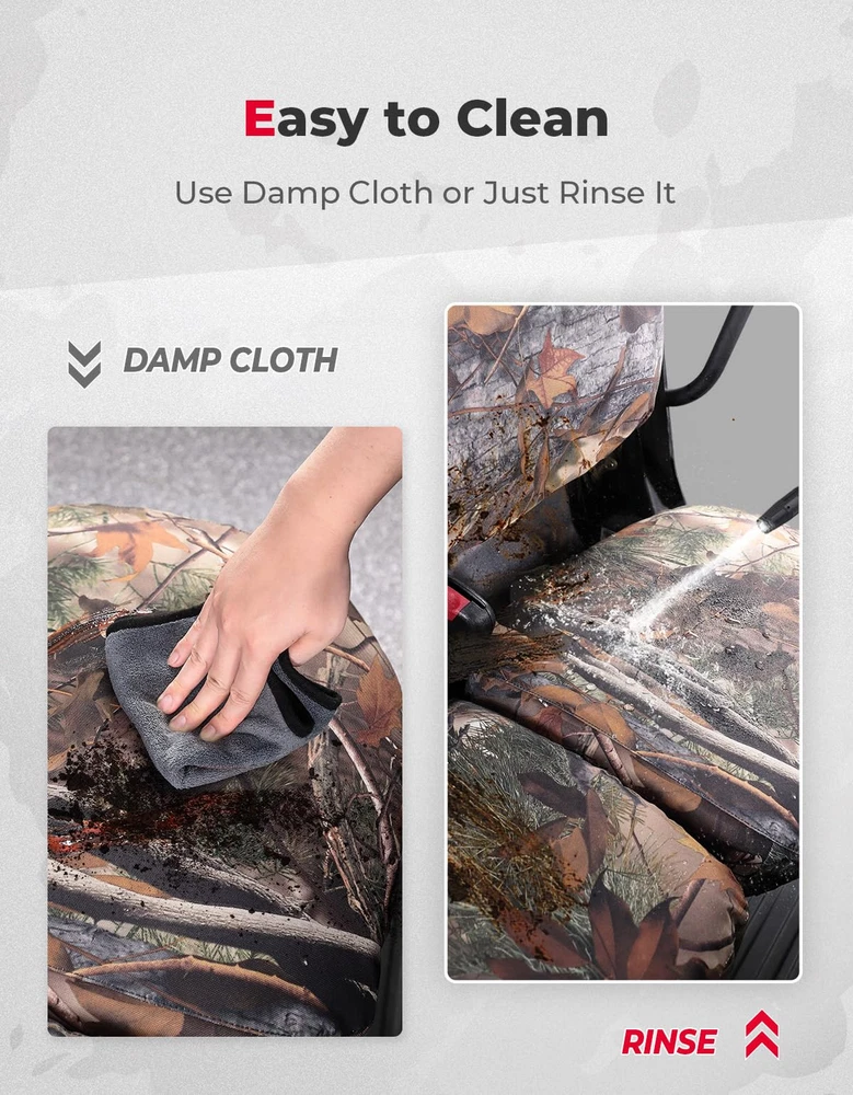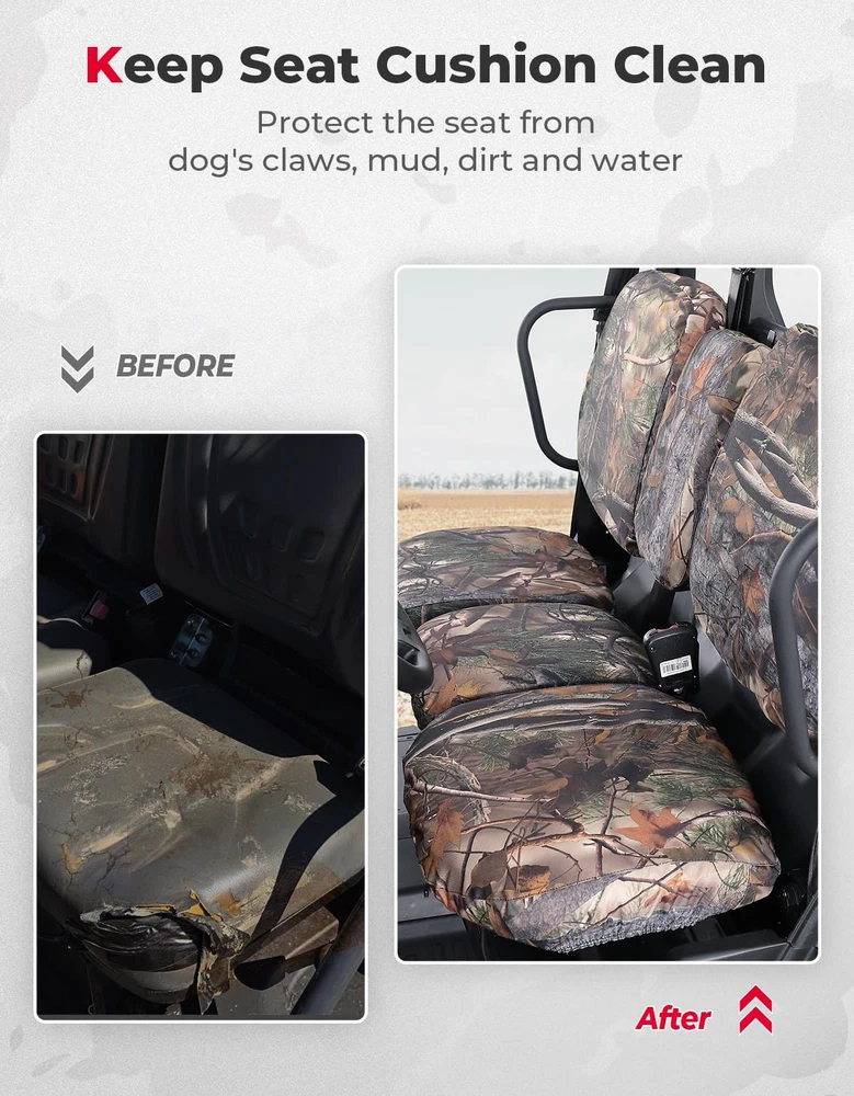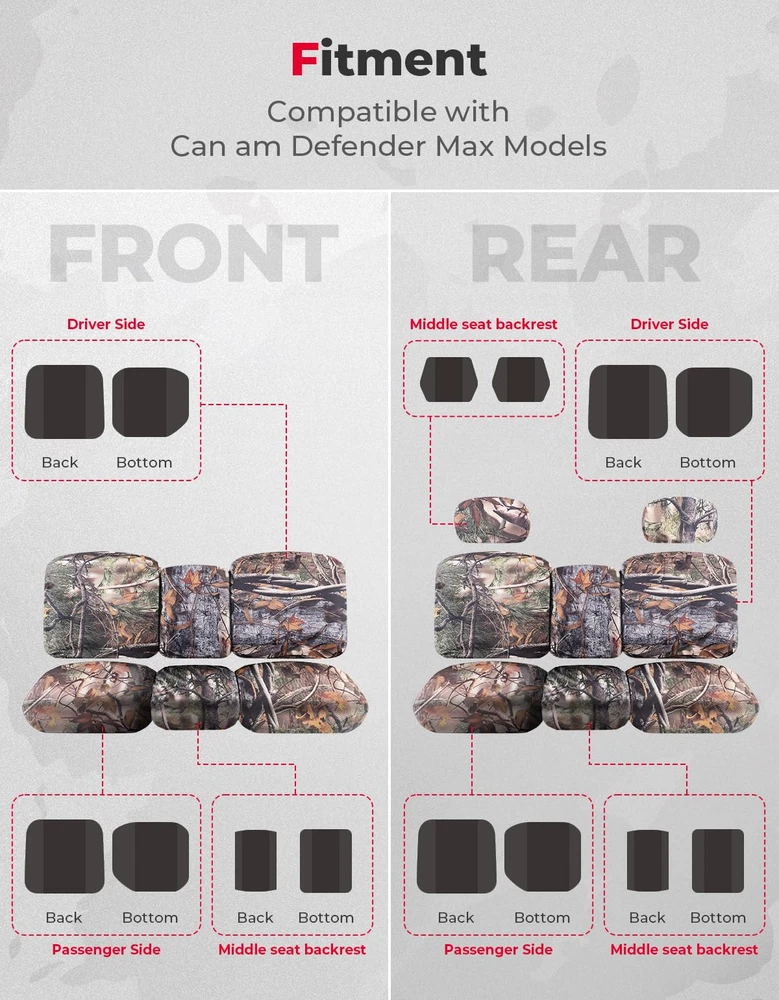 KEMIMOTO UTV Seat Covers Camo, Waterproof Repellent Compatible with Can Am Defender Max Front Two Doors Split Bench Seat Covers- Camo Description Features: FITMENT - Kemimoto Seat Covers will be compatible with Can Am Defender Max (All Models) - Lonestar editions will be a very tight fit due to increased side bolstering on seats. Note: Only fit for standard seats, not for bolstered seats SAVE & PROTECT YOUR SEAT - KEMIMOTO water-resistant H10 seat cover is made of scratch-resistant 1680D oxford fabric, which will protect the seats from your dog's claws. Have fun taking your dog that loves to ride. UTV seats cover also helps make the old worn seat look new again WATER RESISTANT & DURABLE - Being made of quality 1680D oxford fabric, kemimoto utv seat covers own the features of water resistance so as to protect your seats from mud, rain, and snow. In addition, kemimoto seat covers are odorless, frizz-free, breakage free, wrinkle-free, strong, and durable, ensuring a long time performance EASY TO INSTALL & CLEAN - The buckles of the bottom cover are UPGRADED to hook and loop fasteners to make your installation and removal easier, say goodbye to broken buckles on the bottom seat part. Furthermore. Thanks to1680D oxford fabric, you just need to wipe rain, mud, snow, and your dog's footprints right off with a damp cloth or spray hose FIT & TIGHT - The seat cover comes with a headrest cover back and the bottom cover, which is perfect to sit on. The hook and loop fastener and elastic hem provide a good tight fit and keep the split bench seat covers in place Product Details: Fit Type: Compatible with Can Am Defender Max (All Models) - Lonestar editions will be a very tight fit due to increased side bolstering on seats. Note: Only fit for standard seats, not for bolstered seats. See more Brand: KEMIMOTO Color: Camo Special Feature: Water-resistant, Scratch-resistant Target Audience: UTV owners with Can Am Defender Max vehicles, particularly those who also own dogs and want to protect their seats during off-road activities. See more Manufacturer: kemimoto Recommended Uses For Product: Protecting UTV seats during off-road activities, especially when accompanied by pets Fit Type: Compatible with Can Am Defender Max (All Models) - Lonestar editions will be a very tight fit due to increased side bolstering on seats. Note: Only fit for standard seats, not for bolstered seats. Brand: KEMIMOTO Color: Camo Special Feature: Water-resistant, Scratch-resistant Target Audience: UTV owners with Can Am Defender Max vehicles, particularly those who also own dogs and want to protect their seats during off-road activities. Manufacturer: kemimoto Recommended Uses For Product: Protecting UTV seats during off-road activities, especially when accompanied by pets Model: KMB01BK-M Item Weight: 6.08 pounds Product Dimensions: 16.14 x 7.48 x 11.81 inches Country of Origin: China Item model number: KMB01BK-M Manufacturer Part Number: KM3B01-CM Special Features: Water-resistant, Scratch-resistant Date First Available: January 16, 2024 Handling We will ship all orders within 3 business days of payment. Delivery We do not ship outside of the Continental US. Feedback We take our reputation seriously, we buy and sell online, so we understand the value of trust. If you are unsatisfied with your order, please contact us and we will work with you to resolve it to your satisfaction.