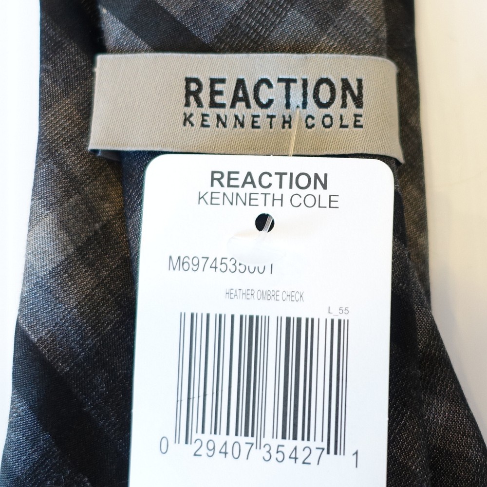 KENNETH COLE REACTION Black Gray Heather Ombre Check Silk Blend Slim Tie Lovely woven tie by Kenneth Cole Reaction offers a stylishly modern take on a classic pattern. Brand: Kenneth Cole Reaction Material: 68 % Silk, 32% Viscose Cleaning: Dry Clean Color: Black Multi Width: 3" Condition: NWT - New with tag All items come from a non-smoking home.