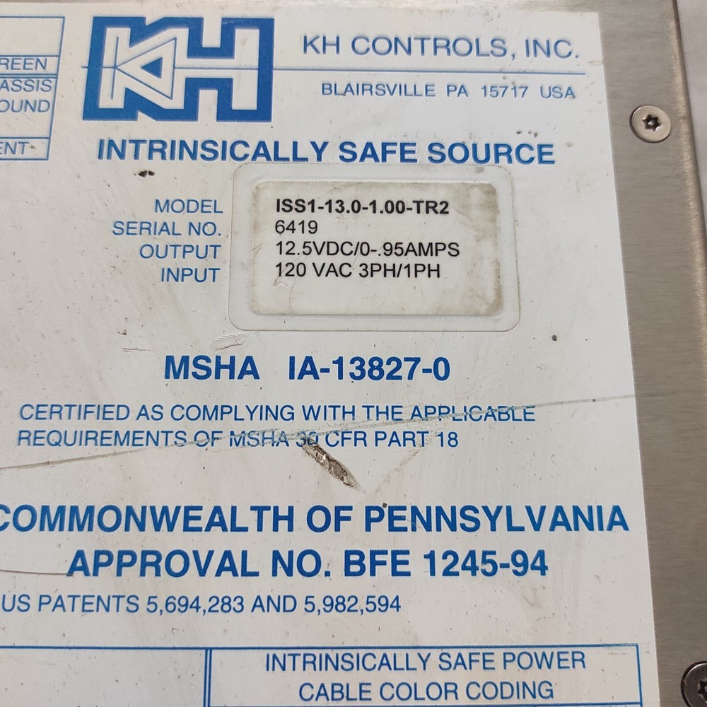We are pleased to offer KH CONTROLS ISS1-13.0-1.00-TR2 INTRINSICALLY SAFE SOURCE Product Detail: KH CONTROLS ISS1-13.0-1.00-TR2 INTRINSICALLY SAFE SOURCE MODEL: ISS1-13.0-1.00-TR2 TYPE: INTRINSICALLY SAFE SOURCE OUTPUT: 12.5VDC/0-95AMPS INPUT: 3-PH 120VAC Shipment processing time: All orders are processed within 1-2 business days. Orders are not shipped or delivered on weekends or holidays. Shipment confirmation & Order tracking: You will receive a Shipment Confirmation email once your order has shipped containing your tracking number(s). The tracking number will be active within 24 hours. Customs, Duties and Taxes: We are not responsible for any customs and taxes applied to your order. All fees imposed during or after shipping are the responsibility of the customer (tariffs, taxes, etc.). Damages: In case of damage or lost of shipment during transit, We will investigate the matter and provide the satisfactory resolution. Returns Policy: We offer return or exchange of ordered item up to 30 days of receipt of goods in subject to certain condition. In case of damaged goods we shall offer the replacement or refund for the ordered item. If you require any more details, request you to send us the direct message through eBay for early resolution. Thanks