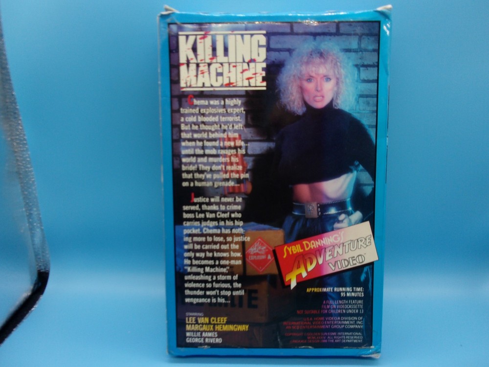 SYBIL DANNING'S ADVENTURE VIDEO - KILLING MACHINE VHS PREVIOUSLY VIEWED ORIGINAL VIDEO CASSETTE. RARE BIG BOX RELEASE WITH INNER CASE. Please look at the photos carefully to make your own determination of condition. Box and tape appear to be in good condition. Tape has not been viewed / tested all the way through. Will go to the highest bidder and will ship USPS Media Mail. THANKS FOR LOOKING and BE SURE TO CHECK OUT OUR OTHER GREAT COLLECTIBLE ITEMS !