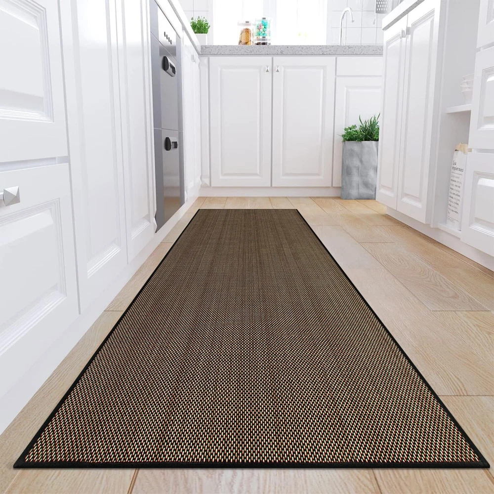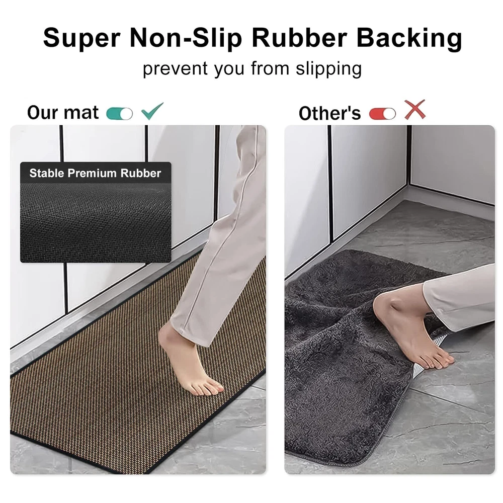 Non Slip Kitchen Rug:The kitchen mat with non-slip rubber backing has great grip effect, which ensures that kitchen rug stays firmly in place.The kitchen floor mat can provide safety for your family and eliminate any concerns about slipping or shifting.[Notice]Make sure the floor is clean and dry before use because water under the mat can cause it to slip. Super Absorbent Kitchen Mat:The kitchen floor mat is woven with chenille and the top of the mat is porous enough to hold wet material and dirt and other debris.So the kitchen mat has an excellent absorption ability that can absorb spilled water, oil and fallen food particles instantly which saves your floors from constant wetness and mess. Easy to Clean:The kitchen floor mat made of washable material is machine washable and vacuum cleaner-friendly, which can greatly reduce the trouble of hand washing and save cleaning time.This low-maintenance aspect makes it an ideal choice for your busy households. Kid & Pet Friendly:This kitchen rug with a soft and skin-friendly surface is made of non-woven fabric, which is safe and environmentally friendly, non-toxic, and tasteless.Safe for everyday high foot traffic areas and more resistant to life's unpredictable messes from kid or pet activity. Multi-Purpose:30 inch wide kitchen floor mat is wider than the most kitchen mats on the market.The kitchen rug has the design of farmhouse and is available in different sizes to accommodate a variety of preferences and room layouts.Kitchen mats for floor widely used for front of kitchen sink, indoor front door, back door, laundry room, hallway, entryway, entrance, patio, bedroom and any high traffic space.