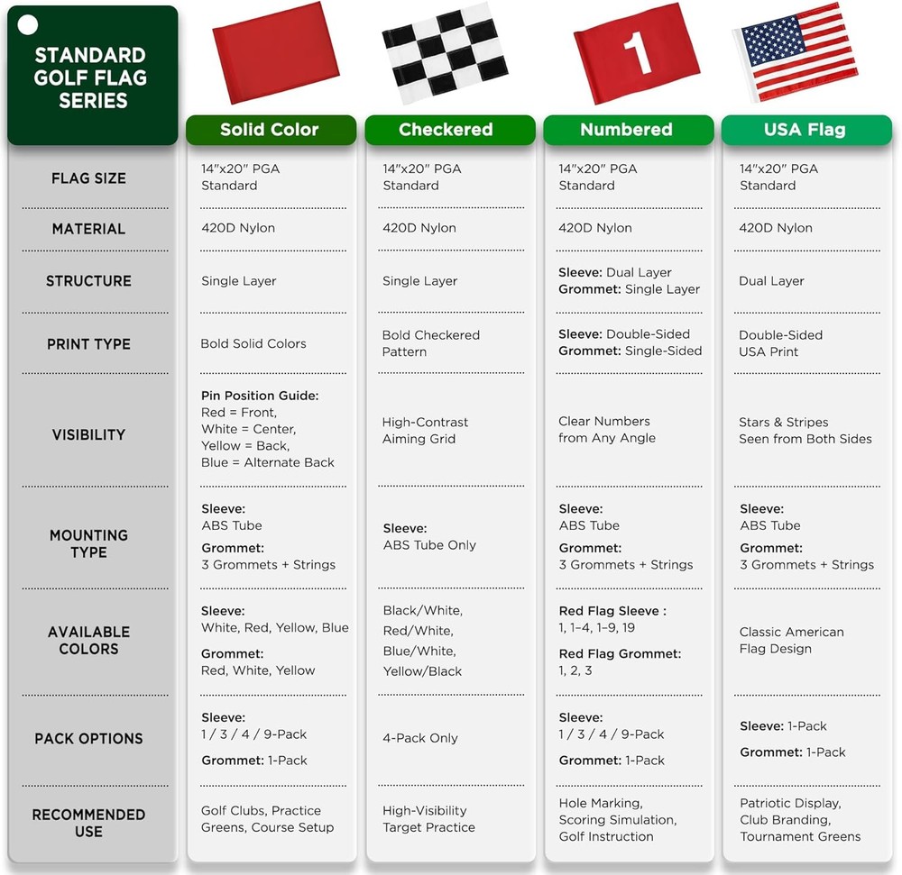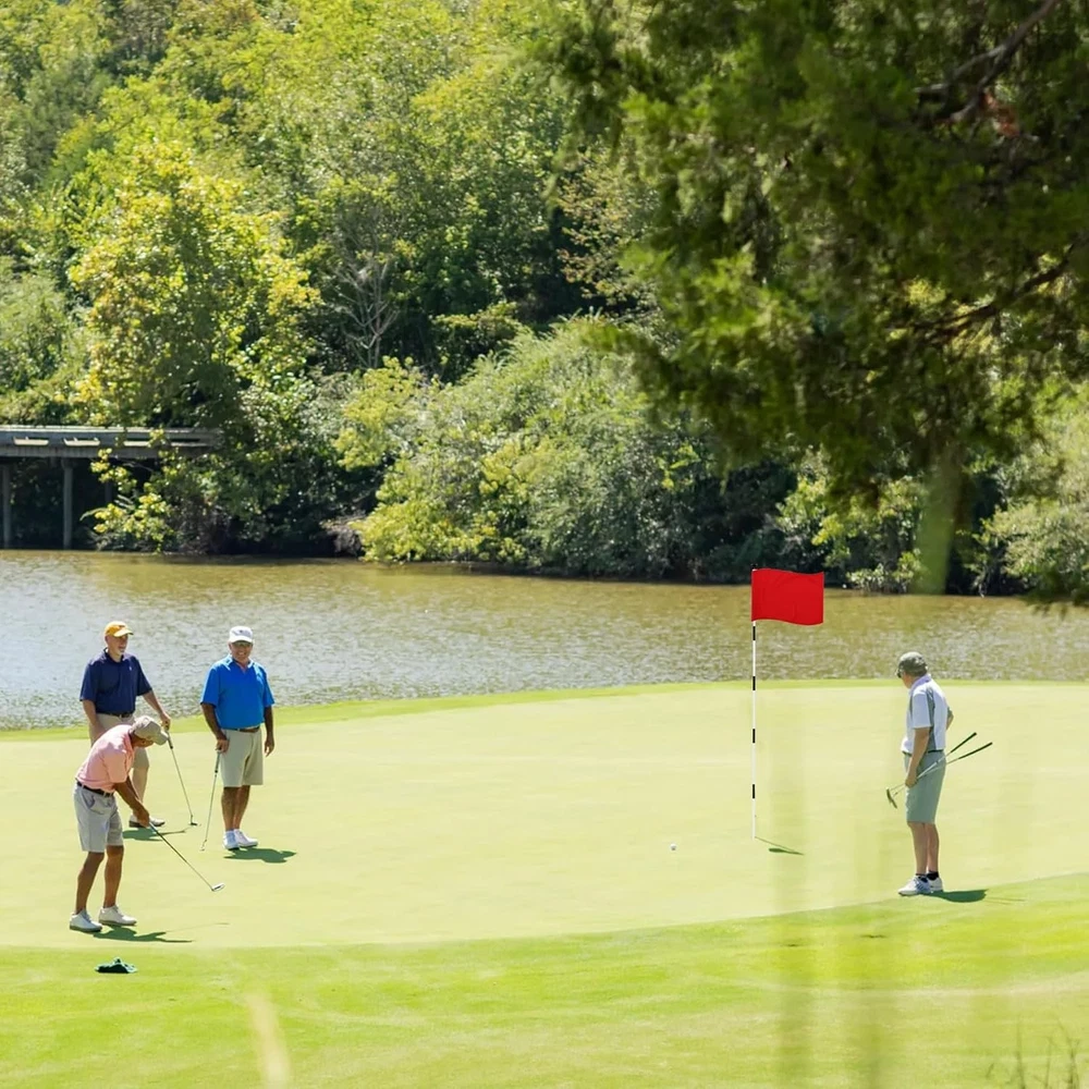 KINGTOP Golf Flag 20x14 Inch - Plain Red, 420D Inch- Blank Red- 1pk Product Details Item Weight: 3.17 ounces Manufacturer: KINGTOP Item model number: KT-GA100-NL1 Theme: Sport, Golf Color: 20x14 Inch- Blank Red- 1pk Brand: KINGTOP Recommended Uses For Product: Garden Occasion: Birthday, Christmas, Father's Day, Golf Country Club, Putting Green, Backyard Golf, Thanksgiving Material: Nylon, Plastic, Polyester Special Feature: Heavy Duty Specific Uses For Product: Indoor, Outdoor Product Dimensions: 20"L x 14"W Fabric Type: 420D Nylon PGA Standard Size: Tailored perfectly at 14" H x 20" L, designed for flagpoles between 6 to 8 feet, meeting the official PGA standard. Vibrant Colors: Crafted from engineering-grade 420D nylon, the Kingtop flag showcases vivid colors that resist fading, ensuring lasting brilliance on the greens. Superior Craftsmanship: Constructed with meticulous double-line stitching, Kingtop golf flags resist tearing and fraying, even under persistent wind conditions. Effortless Setup: Pre-embedded ABS sleeve ensures quick attachment or replacement on flagpoles, compatible with PGA flagpole diameters between 3/8" and 6/8". Application: Ideal for backyard putting greens, golf clubs, and golf courses, the KINGTOP flag elevates every golfing space, enhancing leisure time with family and friends.