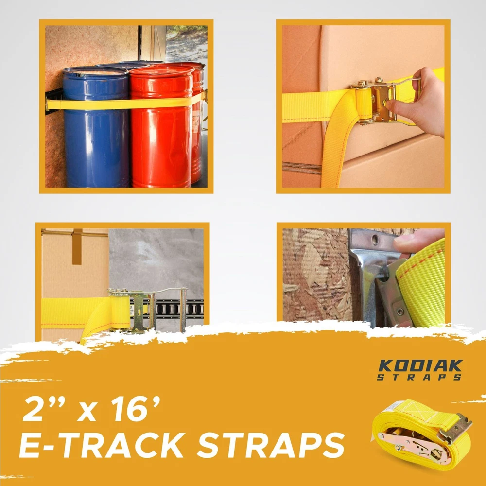 KODIAK STRAPS 6 Pack 16' E-Track Ratchet Tie-Down Straps for Cargo Van Trailer 4400LBS Load 1. PRO E TRACK STRAP. 2. WLL 1467LBS/ BS 4400 LBS 3. MADE FOR LONG-TERM USE. 4. EASY TO USE. Package Includes: 6Pack x 2” x 16’ E-Track Ratchet Tie-Down Straps KODIAK STRAPS 6 Pack 16' E-Track Ratchet Tie-Down Straps for Cargo Van Trailer 4400LBS Load PRO E TRACK STRAP – These 2" x 16' Heavy Duty E-track straps can easily Secure Cargo Loads with any E-track assecories In Your Box Truck, Cargo Van, Pickup Bed, Flatbed/Utility Trailer, Enclosed Trailer, or Warehouse With The Convenient And Versatile e-track accessories System. WLL 1467LBS/ BS 4400 LBS – With our e-track ratchet straps made up of rugged and rust-resistant steel, and webbing made up of high-tenacity, heavy-duty polyester. our e-track ratchet straps for enclosed trailers boast a working load limit of 1467 lbs and minimum breaking strength of 4400 lbs. MADE FOR LONG-TERM USE – These Straps for E-track tiedown rail are made out of durable polyester. The Stiff yellow webbing is water and UV-ray resistant, minimizing the risks of mold/mildew growth; they won’t shrink or stretch even when wet. This e-track accessory for the enclosed trailer is made to ensure the most reliable securement throughout the bumpiest rides. EASY TO USE – 1. Open the e-track ratchet strap by lifting the lever and threading the loose strap ends around the bottom rod of the spindle (ratchet handle) 2. Pull the excess webbing through and pump the strap tight until it is wrapped securely around your cargo load 3. Clip the lever down and your load is secure! MONEY BACK GUARANTEE – Your satisfaction is our number one priority. Therefore, we offer a 30-day money-back guarantee for your peace of mind. If you have any concerns about these e-track ratchet straps or any e-track accessories, contact us and we will work to resolve your issue promptly! Package Includes: 6Pack x 2” x 16’ E-Track Ratchet Tie-Down Straps Shipping About Us Return & Replacement Warranty Contact us Shipping We only ship to the lower 48 states, no APO/FPO addresses or PO Boxes are allowed. If you have not received your package, please contact us first. FREE SHIPPING: We offer free shipping on all orders. 1 BUSINESS DAYS SHIPPING OUT DELIVERY DAYS: 1-7 BUSINESS DAYS WAREHOUSE in CA & NJ & TX: Select the nearest and fastest warehouse for shipping. About Us Welcome to our store. Kodiak Straps committed to delivering superior cargo control products. We manufacture and sell professional and quality trailer, truck, ATV, UTV, motorcycle tie downs, as well as professional and quality slings. We always keep improving and innovating our product line for a better customer experience. Your feedback are significant to us! We are a new established brand [2018]. We are the source factory manufacturingCargo Control Products since [1998]. We are a group of Millennial professionals whodevoted to delivering our valuethrough our products. 🖱 CLICK HERE TO VISIT KODIAK STRAPS STORE Return & Replacement Return & replacement accepted. Items must be returned within 30 days from the date you purchased them. The buyer will pay for return shipping. Any product you return must be in the same condition you receive it and in the original packaging. If you need to return or have a replacement, please contact us first. Warranty Limited Lifetime warranty. If you have a problem with your item, please contact us and we will provide you with a satisfactory warranty program. Please check the item carefully after receiving it. If it's your own fault, any damage will not be covered. Contact us If you have any queries, please contact us via eBay. We will respond within 12-24 hours. 💬 CLICK HERE TO CONTACT KODIAK STRAPS
