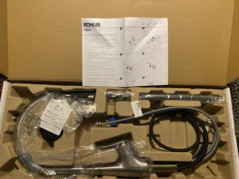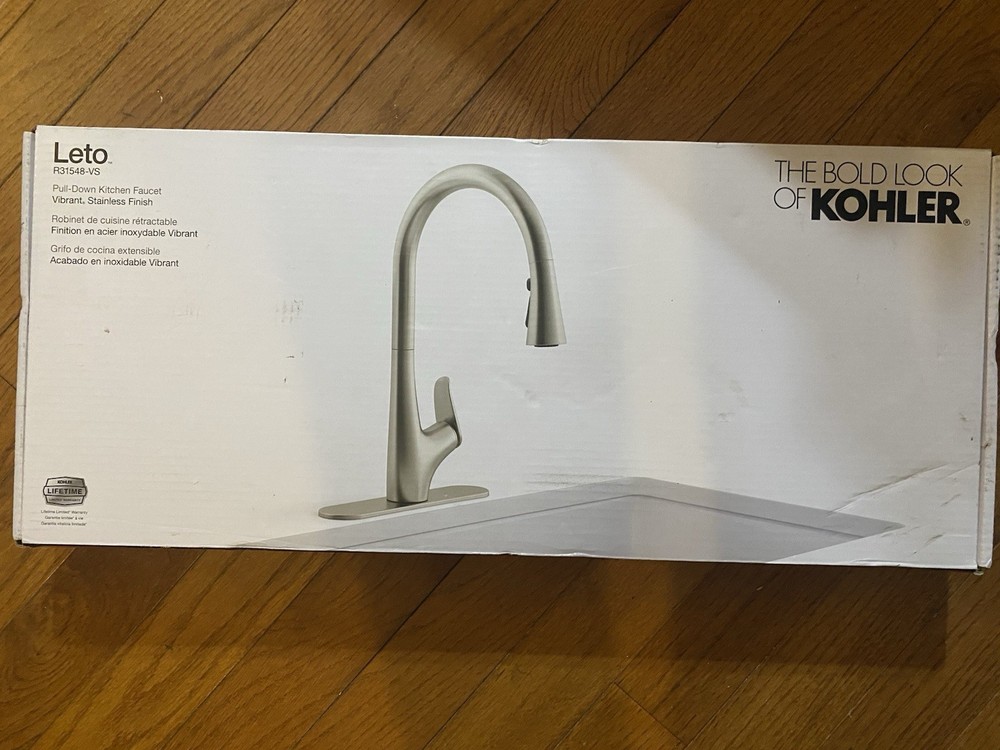 KOHLER “Leto” stainless steel colored pull-down kitchen faucet for Sale! This is in great condition and comes with everything still in the box ready to be installed! This model retails for over 200$ in stores or online, save your money and shop with me today!! Check my page out NOW for more DEALS!!