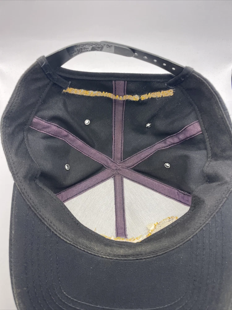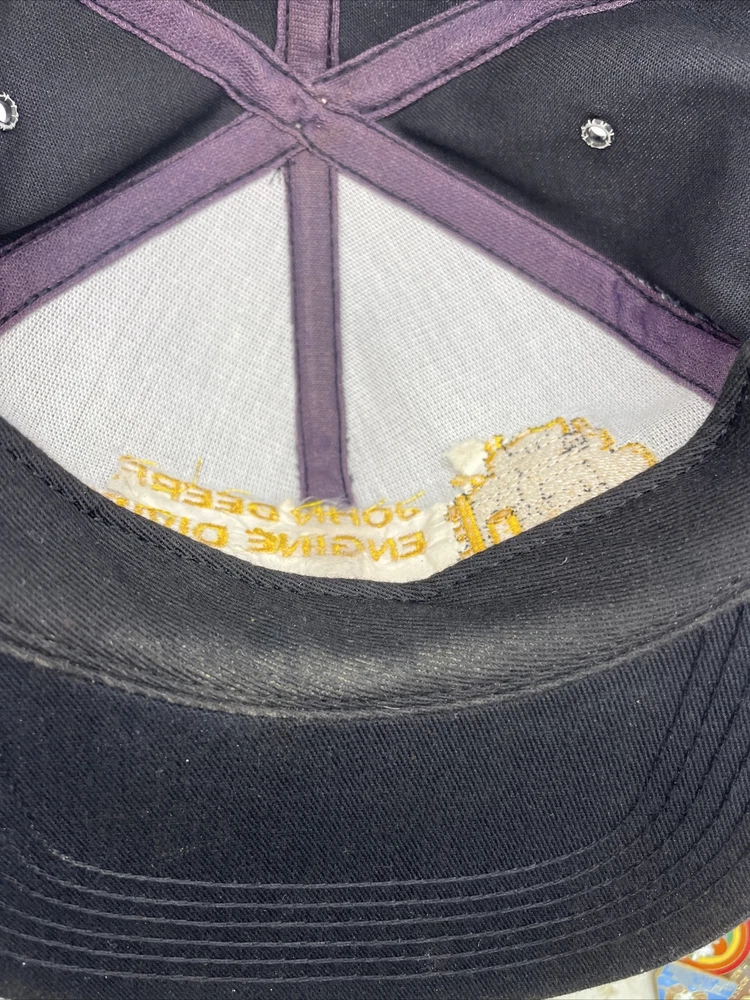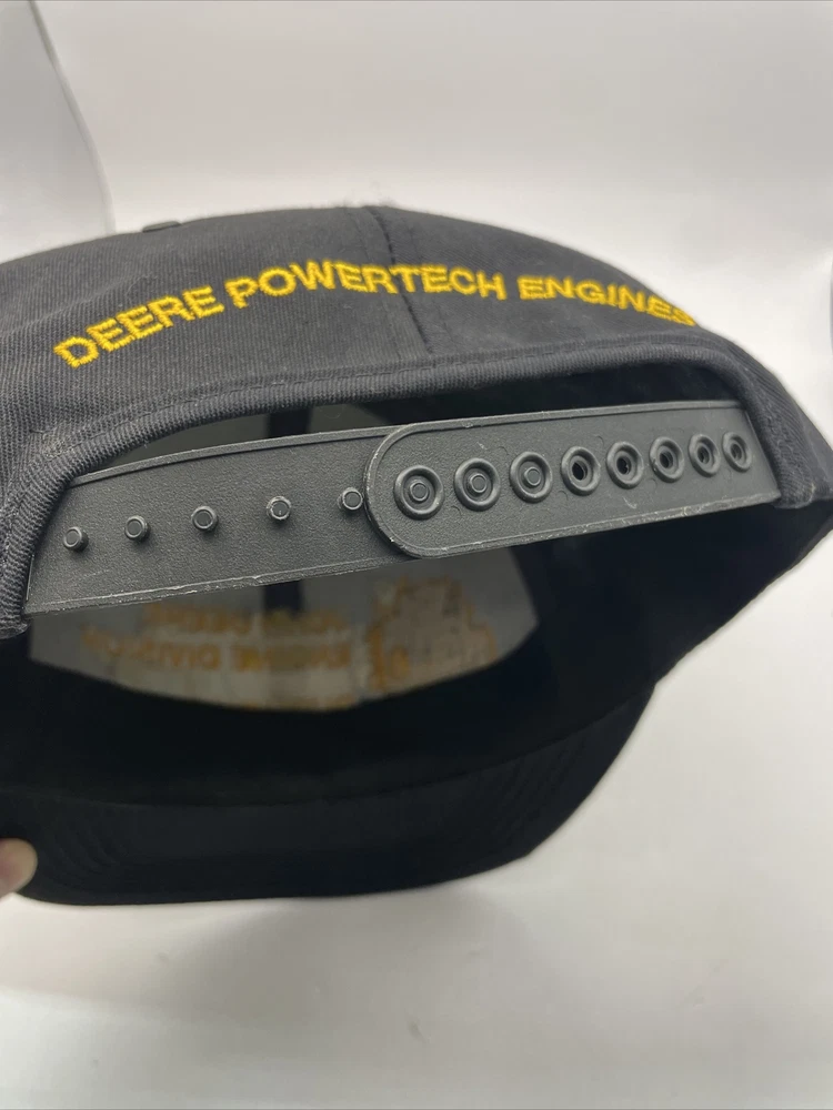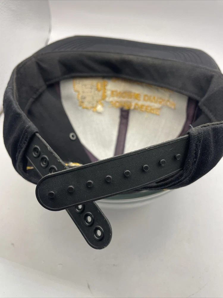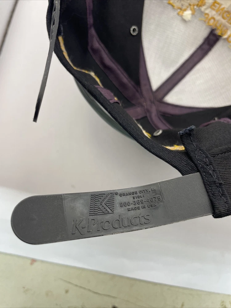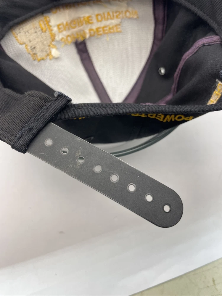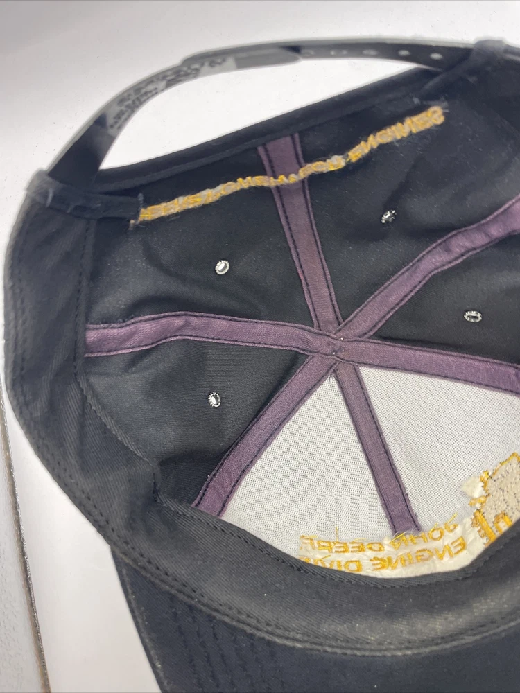 This K-Products John Deere Engine Division Dubuque, IA Made In The USA SnapBack is perfect for any fan of the iconic American brand. This vintage snapback features adjustable sizing, making it comfortable for anyone to wear. The black hat with “Engine Division Dubuque, IA" text is a must-have for any collector or enthusiast. The hat's blue-collar theme and one-size-fits-all design make it a great gift for a hardworking man. This snapback is ideal for everyday wear, whether it's for work or leisure. Add it to your collection today and show off your love for John Deere with this stylish accessory. The hat is in used condition and has minor signs of ware as pictured such as marks to the liner.