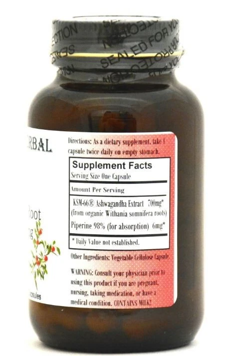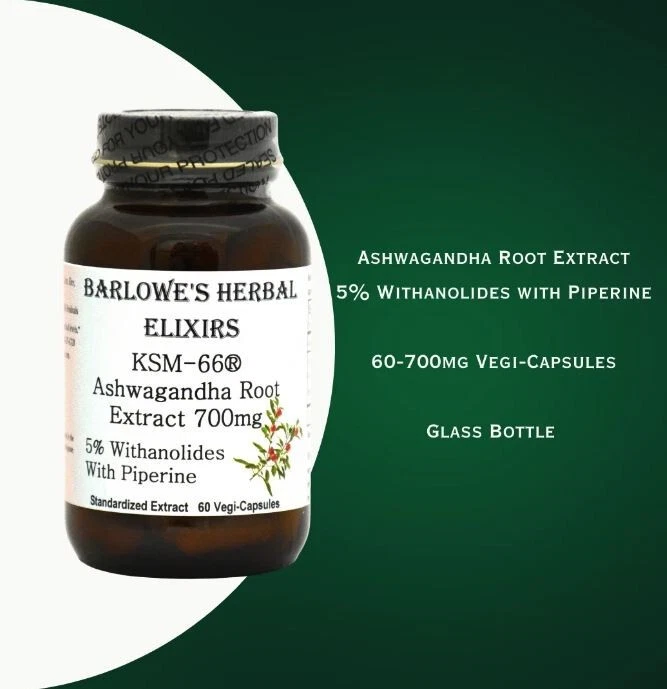 About This Item Now 700mg! Barlowe's Herbal Elixirs now brings you Organic KSM-66 Ashwagandha Extract which is widely considered to be the finest Ashwagandha in the world. This is a potent extract containing 5% Withanolides by HPLC. Ashwagandha, oftentimes called "Indian Ginseng," is an exotic Indian ayurvedic herb and adaptogen with many health benefits. This product also contains 5mg of piperine (black pepper extract per capsule) to increase bio-availability and absorption. Allergen Warning: This Ashwagandha is extracted in the traditional manner after the roots have been soaked in milk. Thus, there are some milk residuals in this product.***These vegetable-derived capsules (Vegan, Kosher and Halal certified) are filled on slow speed equipment and only pure, unadulterated herbal extract is contained in the capsules. There are no magnesium stearates, fillers, gelatin, silicates, gluten, corn, wheat, rice, yeast, starch, titanium dioxide, artificial colors, artificial flavors or preservatives. Capsules produced with high speed equipment in herbal and dietary supplement "factories" generally contain several other ingredients, including powdered lubricants called STEARATES (which can greatly diminish an herb or supplement's absorption into the body). Check their labels! Barlowe also bottles his products in glass as he believes chemical vapors can vent from plastic containers and contaminate the contents and that glass is better for the environment. Ashwagandha Is The Most Famous Ayurvedic Tonic and Adaptogenic Herb! Highest Quality Extract in Vegi-Caps Which Are Kosher, Halal & Vegan Certified! Bottled in Glass! No Stearates, No Fillers, No Gluten, No Wheat, Rice, or Corn Powders! No Artificial Flavors, Colors or Preservatives! Barlowe's Products Can Ship Together At One Low Combined Rate! FREE SHIPPING on orders over $49! Indications: Health Concern: This superb tonic and adaptogenic herb is generally safe, but it is potent and should be utilized with care. This product is for dietary use. If side-effects occur, discontinue use immediately! The above statements have not been evaluated by the Food and Drug Administration (FDA). This product is not intended to diagnose, treat, cure, or prevent any disease. Ingredients: Ingredients: Ashwagandha 5% Withanolides Extract, Plant Cellulose (HPMC) from VegiCaps Directions: Instructions: Take one or two capsules either once or twice a day on empty stomach with water. Results and usage amounts may vary based on body type and weight. Specifications Brand Barlowes Herbal Elixirs Manufacturer Aphrodite's Apothecary LLC Count 60 ~ Will be wrapped with care. ~ ~FREE SHIPPING~ Any questions, please feel free to contact us. Buy with confidence! Thanks for looking!