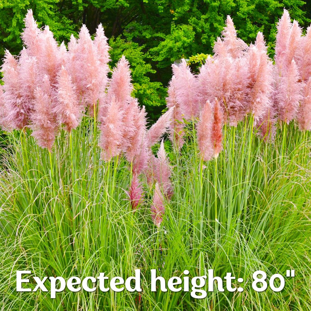 KVITER 100 Pink Pampas Grass (Cortaderia Selloana Rosea) Seeds, Ornamental Grass Seeds Heirloom, Hardy Pampas, - Ideal for Outdoor Perennial Plants, Garden Borders and Pampas Grass Decor Key Features: i High Germination Rate: These pink Pampas Grass Seeds for Planting, (Cortaderia Selloana seeds - Perennial Grass seeds) germinate in 14-21 days at 65-75 ° F, forming ornamental grasses. i Easy to Grow: Sow pink grass seed (perennial grass seed) 1/4 inch deep in full sun. Pampas grass seeds for planting outdoors yield lush ornamental grass plants in USDA zones 7-11. i Versatile Beauty: Decorative grass seeds produce blush pink pampas grass plants live with fluffy plumes, adding striking height of Pink pampas grass tall up to 7 ft and width of 4.9 ft. i Hardy & Adaptable: Hardy pampas grass - Pink Ornamental Grass, Tall Decorative Grass - flourish in varied soils. These outdoor perennial plants stand tough. i Lush Displays: Natural Pampas Grass Plants create lasting scenes in gardens or containers. Pink Dried Pampas Grass is used in Shelf Styling, Wall and Bedroom Decor. Product Description: Elevate your landscape with the elegant allure of pink pampas grass. With its stunning blush-toned plumes and graceful arching leaves, this perennial ornamental grass becomes a focal point in any outdoor setting. Perfect for gardeners seeking natural beauty, it offers season-long interest and flexible styling options, whether planted as a standalone specimen or used to enhance garden borders and screens. Growing to about 7.4 ft in height and spreading nearly 4.9 ft wide, this hardy selection suits a variety of climates and conditions. Adaptable and resilient, it thrives in full sun and well-drained soil, blending seamlessly with other garden flowers. If you're searching for the best grass seed for summer or fast growing grass seeds that can handle diverse conditions, consider pairing this ornamental showpiece with drought resistant grass seed or drought tolerant grass seed to maintain a lush, water-wise landscape. Planting seeds in late spring ensures a strong start, while proper care, like removing spent plumes and protecting young shoots-supports vigorous growth. For southern regions, where grass seed for southern lawns is essential, this choice easily adapts to warmer conditions. By incorporating grass seeds known for resilience, you can create a harmonious setting that remains green and vibrant, even through changing seasons. Whether you're reimagining an empty plot or enhancing a mature garden, these grass seeds add texture, movement, and visual intrigue. From best grass seed for summer strategies to achieving year-round beauty, pink pampas grass complements a range of planting plans. Its enduring presence and striking blooms make it a favorite among designers and home gardeners alike. Elevate your outdoor aesthetic and enjoy the lasting elegance this ornamental grass provides, proving that even the simplest additions can transform an entire landscape. We create products that preserve the purity of nature and brighten the world.