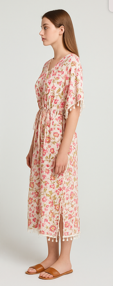 About this item SIZE: one size women's kaftan dress, fits US size M, L, XL QUALITY: made of light and breathable fabric, keep you cool in the summer FEATURES: beautiful print and color, offers enough coverage, oversize design and side split for easy fit MATCHING: can wear as a lounge attire at home or a beach coverup matching with bikini, bathing suit, sunglasses OCCASION: perfect swimwear cover ups for beach, swimming pool, loungewear, waterpark, tanning salon, cruise, honeymoon