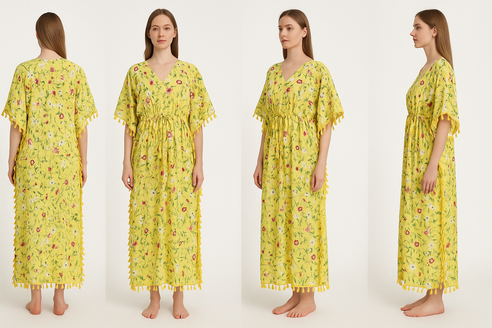 About this item SIZE: one size women's kaftan dress, fits US size M, L, XL QUALITY: made of light and breathable fabric, keep you cool in the summer FEATURES: beautiful print and color, offers enough coverage, oversize design and side split for easy fit MATCHING: can wear as a lounge attire at home or a beach coverup matching with bikini, bathing suit, sunglasses OCCASION: perfect swimwear cover ups for beach, swimming pool, loungewear, waterpark, tanning salon, cruise, honeymoon
