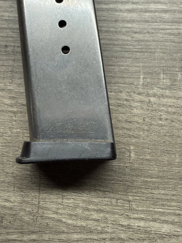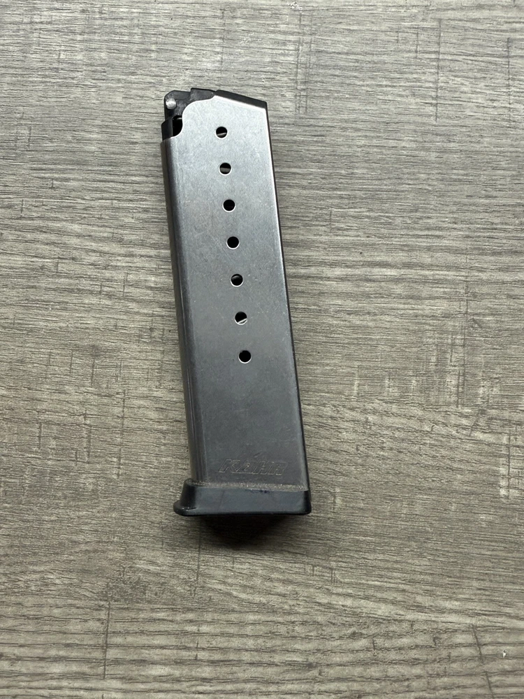 The Kahr Arms K725G P45 magazine is designed for a handgun with a capacity of 7 rounds. It features a stainless steel construction with a grip extension for improved handling. The magazine is compatible with the specified Kahr Arms model, providing additional rounds for extended shooting sessions.