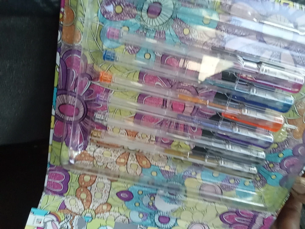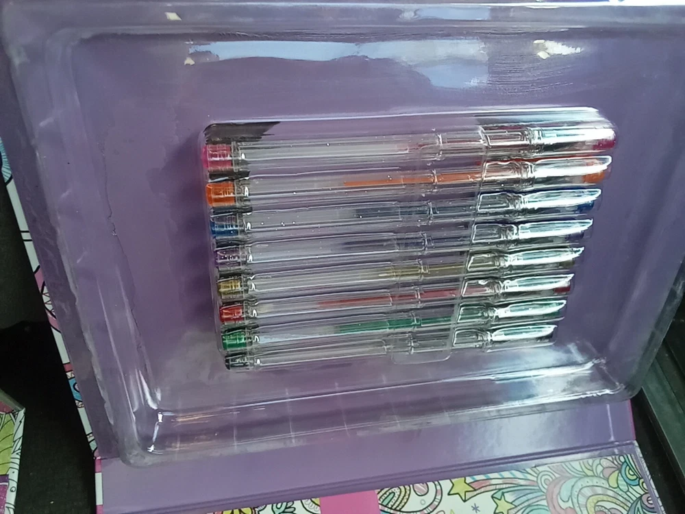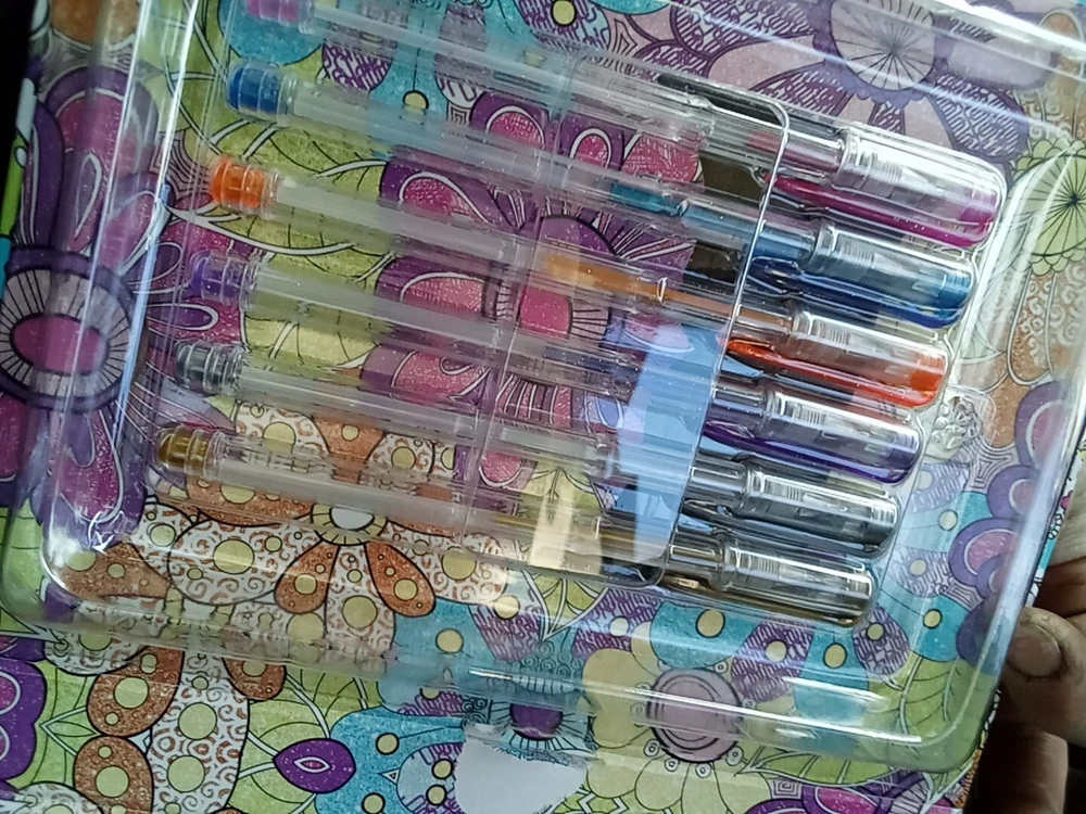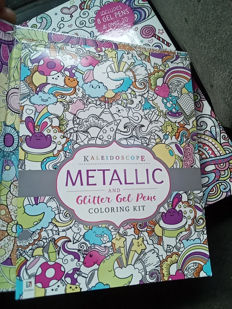 The Kaleidoscope Metallic And Glitter Gel Pens Coloring Kit includes 2 gel pens with a metallic finish in a variety of multicolor shades. These pens are ideal for crafts and art projects, providing a vibrant and shimmering effect on paper. The kaleidoscope design adds a unique touch to your drawings and lettering, making it a fun and creative addition to your art supplies collection.