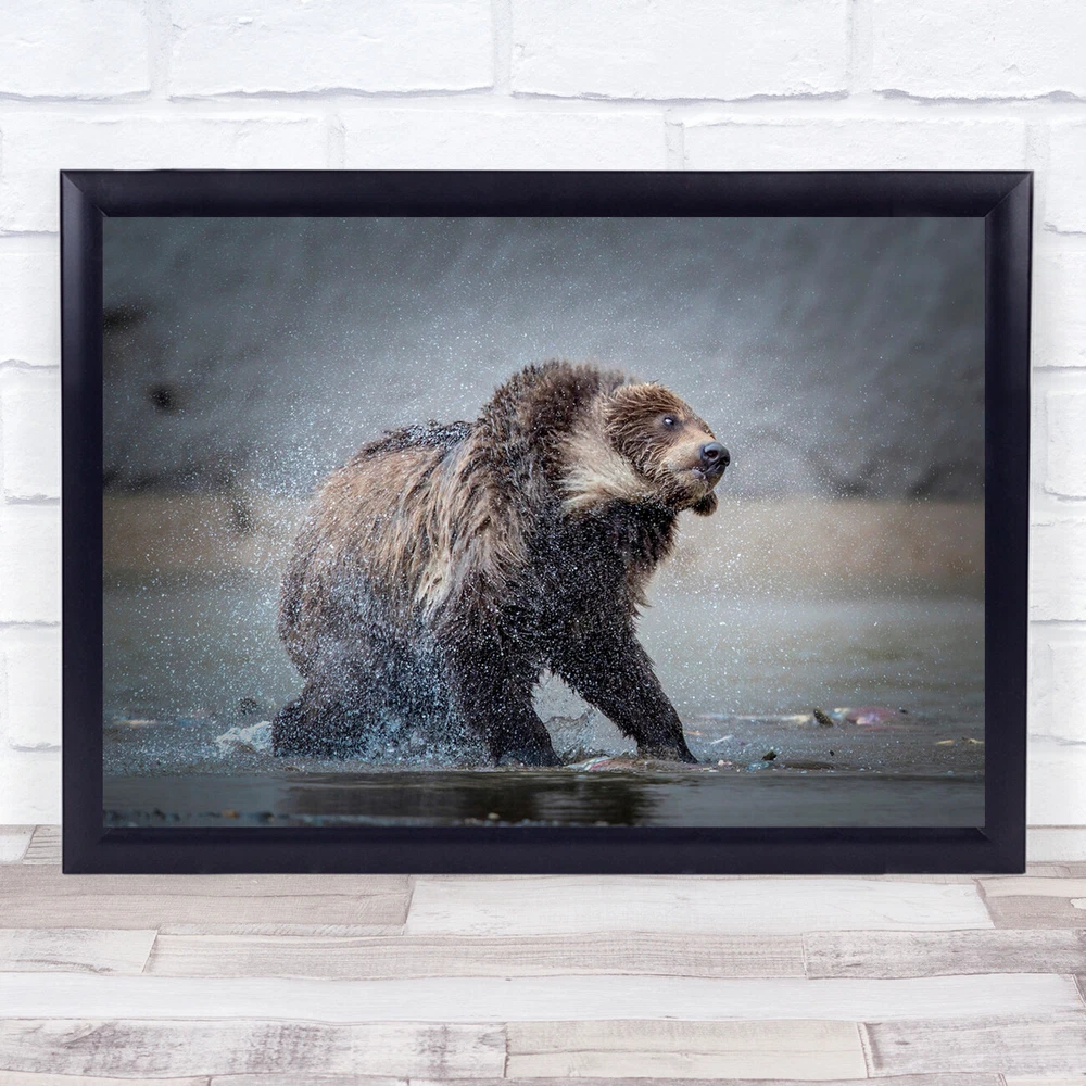 Kamchatka Russia Bear Bears Brown Splash Spray Water River Dry Wall Art Print