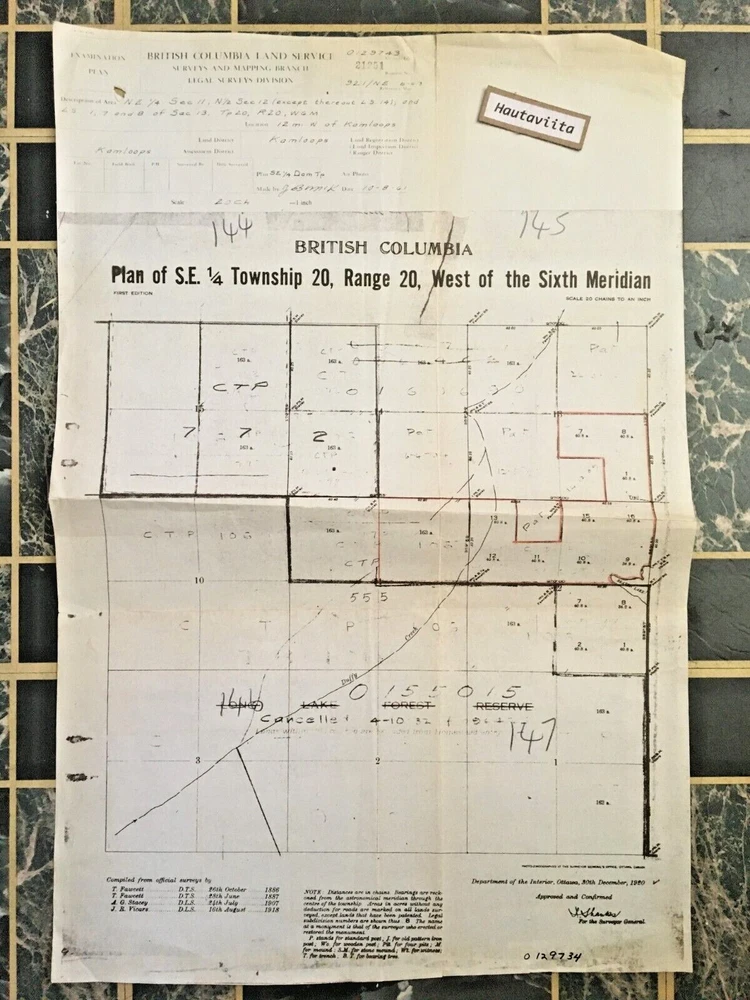 Kamloops Savona BC Survey Map 1961 - Original Printed 1920 Township 20 Interesting survey map chart from BC Land Service.Mapping Branch. Printed in Sept 1961 10-8-61 .Original it was printed from was 1920 Dept of Interior . Measures 14 x 21 1/2 inches.Folded. Condition: Overall in very nice condition.One tiny hole at top left in description box.No others. Light edge tear on fold seam at top.Other than folds no other creases or issues. Shipping for Canada$5.00 and USA is $12.00can$ and Outside N.A. must be requoted. Please verify International shipping costs before bidding. Items that exceed $40.00 will have to be recalculated for Domestic International Shipping. Please Read the Full Description before bidding and purchasing. And Please wait for Invoice to be sent so i can forward the correct shipping,for domestic,and International Rates. Combined shipping for multiple purchases,Please wait for invoice. Item shown is item to be delivered.All sales are final. When item(s) received and your happy and leave feedback, seller feedback will be posted. Item shipped insured ebay. Great item for the collector . Thanks for looking .Bid with confidence. 23Years of Longtime service on Ebay.