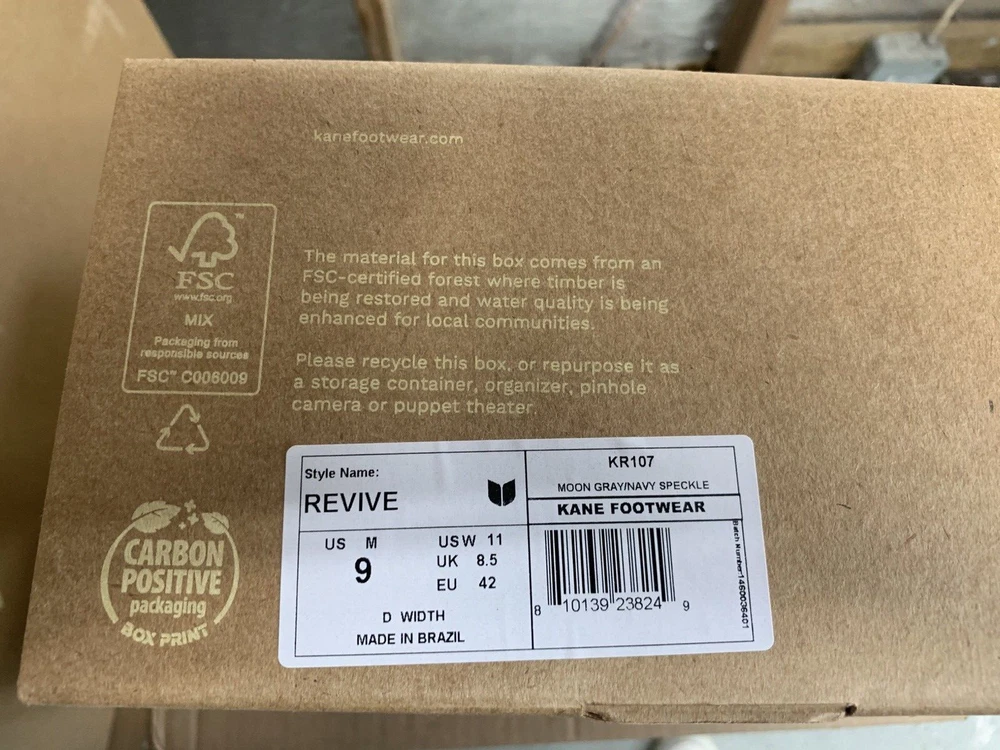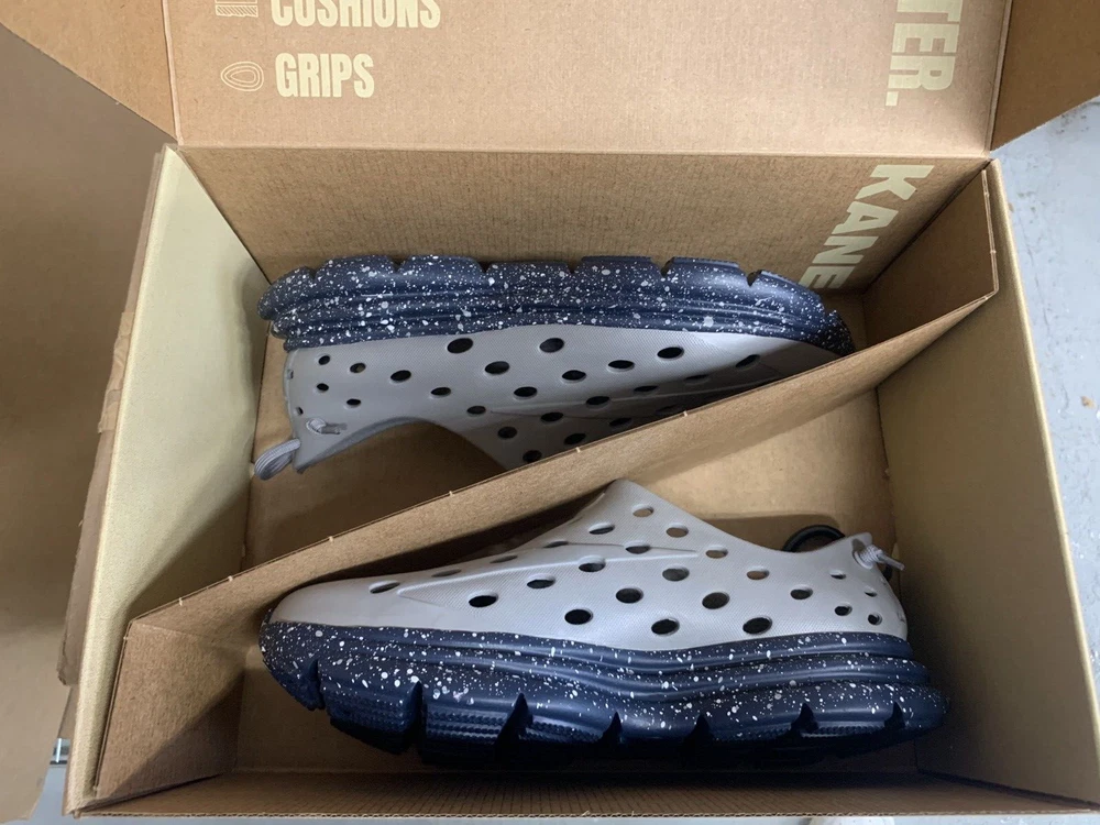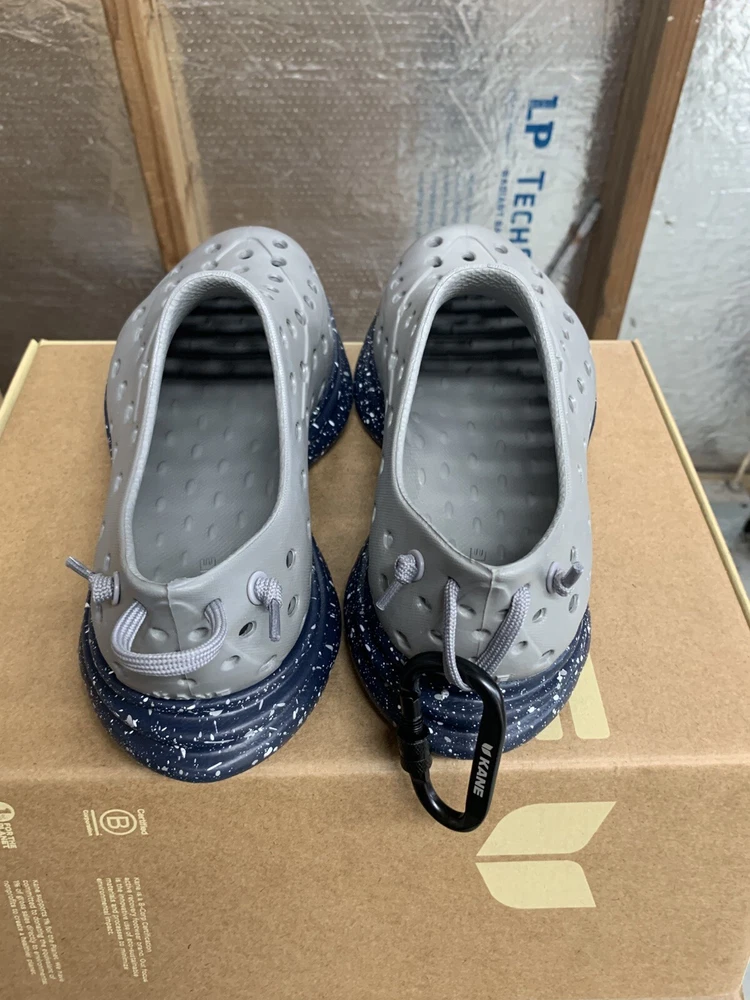 Brand new with box Men's size 9, Women's size 11 All sales are final, no returns Fast shipping! KANE Revive shoes are made of bio-based closed-cell RestoreFoam™. The shoes don’t absorb moisture, so they’re just as functional in water as they are on land, and they’re quick-drying. The KANE Revive shoes can easily be wiped or washed off with soap and water. Please avoid exposure to extreme heat or sun for this can cause the shoes to shrink or warp. Dishwashers, washing machines, or hot cars can also cause the shoes to shrink or warp. The KANE Revive sizing follows the standard sizing for a running shoe. Therefore, the size guide should be utilized according to your typical running shoe size. IN BETWEEN SIZES? We recommend sizing down (ex. if you typically wear size 10.5 - select size 10). For a wider foot, go one half size up (ex. if you typically wear size 10.5 - select size 11).