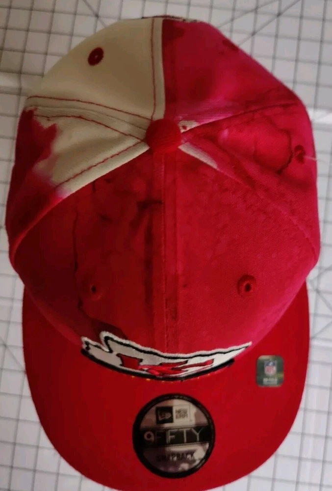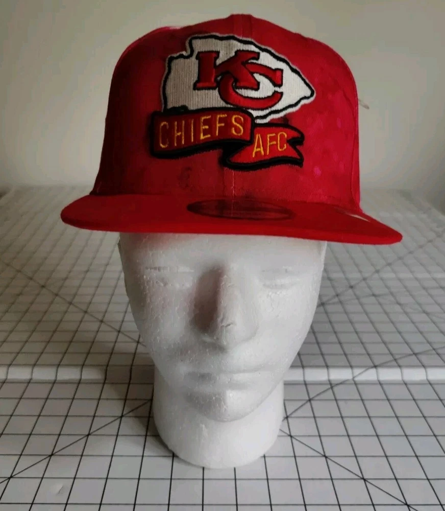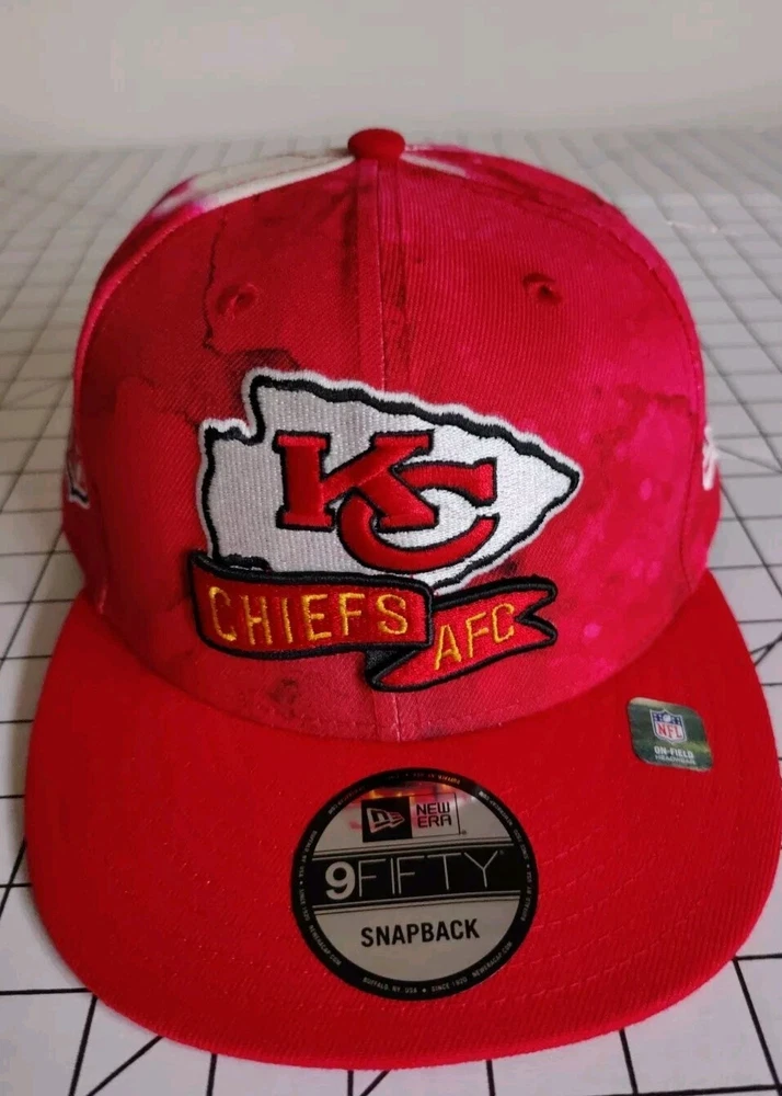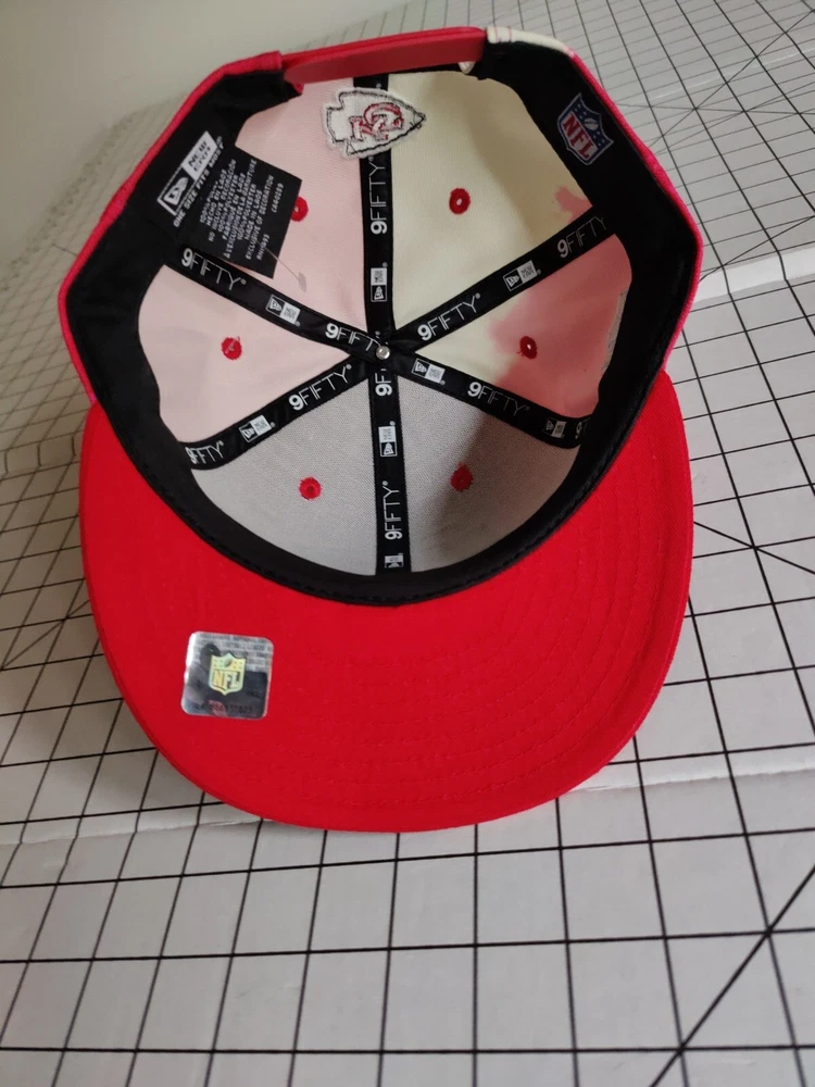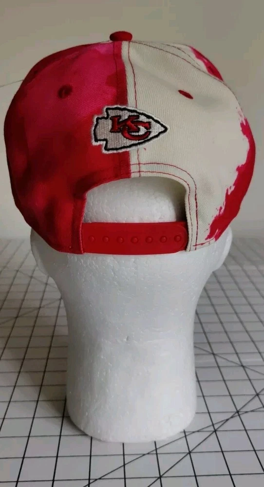 Show off your love for the Kansas City Chiefs with this stylish New Era snapback hat. Featuring an ink blot pattern in red and white, this hat is perfect for any occasion, whether it's a casual day out or a formal event. Made from high-quality cotton canvas material, this hat is adjustable to ensure a comfortable fit for all head sizes. Represent your favorite NFL team with this classic and timeless hat, perfect for any season. Whether you're a fan of Taylor Swift, Mahomes, Kelce, or just love football, this hat is a must-have accessory for any sports enthusiast. Don't miss out on the chance to show off your team spirit and style with this Kansas City Chiefs New Era hat.