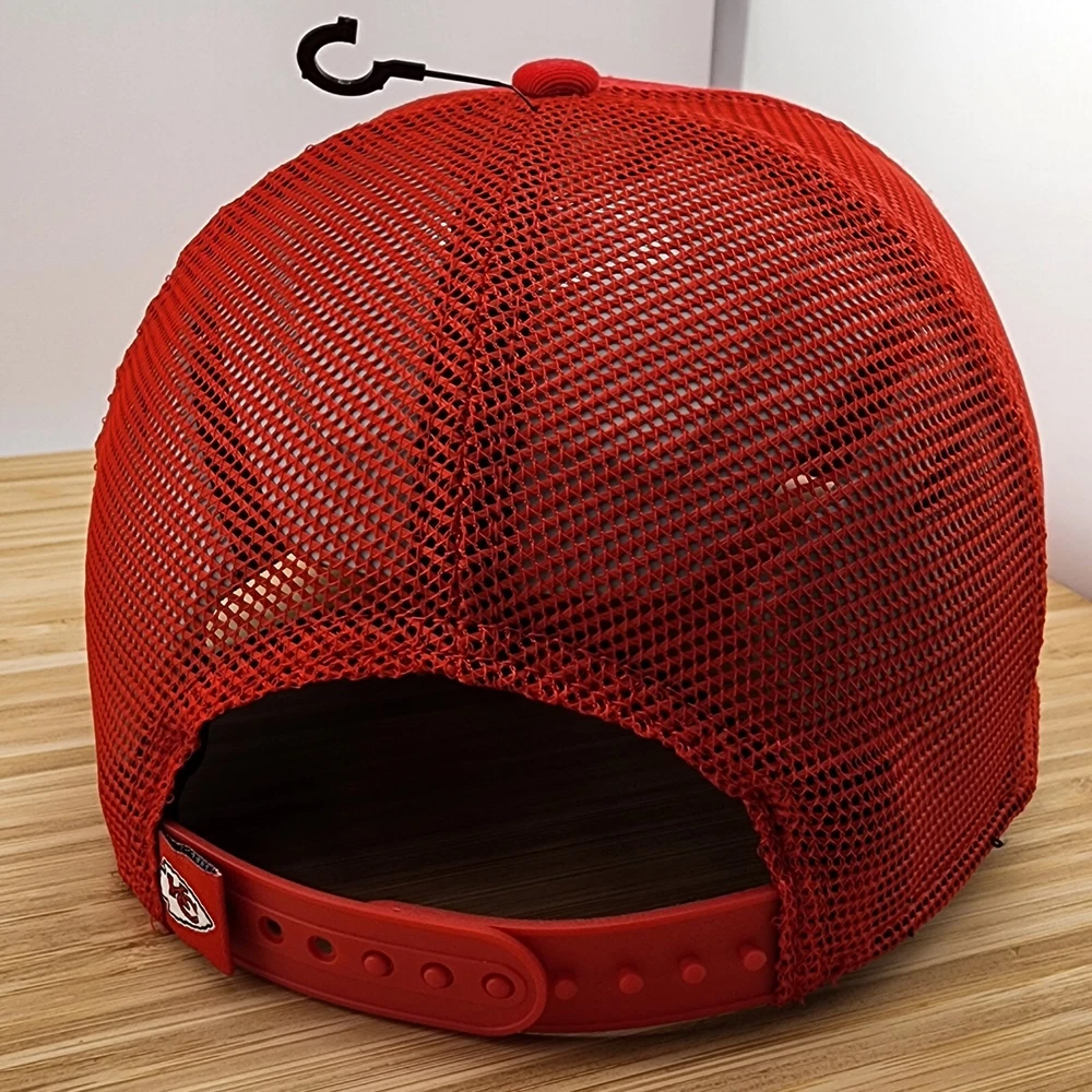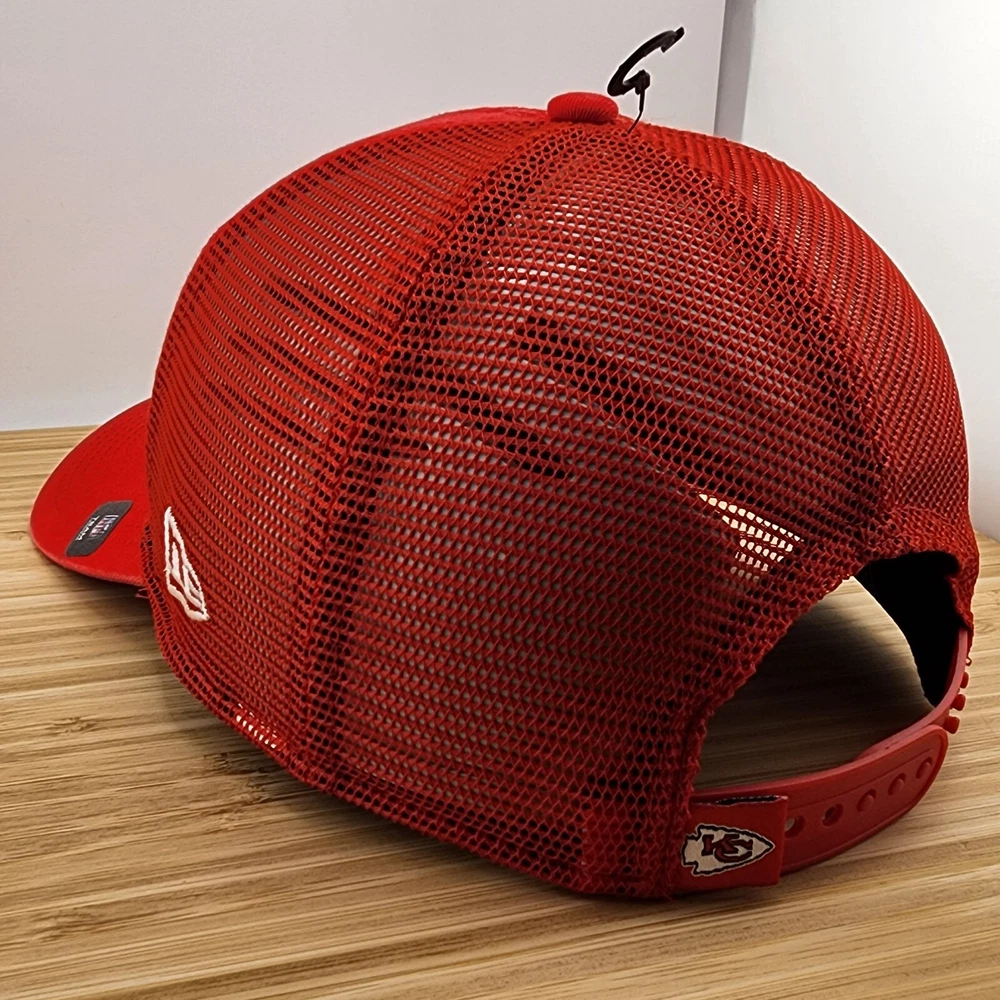 Show off your love for the Kansas City Chiefs with this stylish trucker hat from New Era. The red cap features the team's logo patch prominently on the front, making it a must-have accessory for any fan. The snapback style ensures a comfortable fit for all head sizes, while the mesh design provides breathability for those warmer days. Made in Vietnam, this high-quality hat is built to last and is perfect for any occasion. Whether you're watching the game at home or cheering on the Chiefs at the stadium, this hat is sure to make a statement. Get your hands on this officially licensed product and show your support for the team in style.