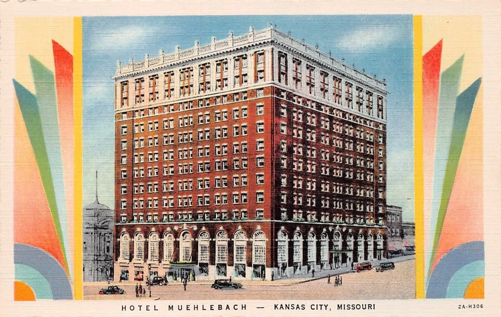 Kansas City MO Missouri Hotel Muehlebach now Marriott Downtown Vtg Postcard C45