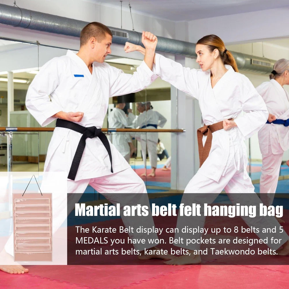 Karate Belt Display Rack 8 Belts Wall Mounted Belts Display Holder Product Description Bullet Points: Display your achievements: This karate belt display rack shows 8 belts and 5 medals in a stylish and elegant way. It is designed for martial arts belts, karate belts and taekwondo belts. Whether you are a beginner or a master, this rack will help you showcase your progress and skills. Help motivate: Showcase your dedication and hard work with this karate belt display rack. Clearly show off your best accomplishments and keep motivated every day. Witness your progress and remember the sweat and perseverance you put in. Small size: Keep your karate belts organized with our display rack that's easy to store due to its lightweight and foldable design. Carry it with you or store it away when not in use. Durable and dustproof: Our Karate Belt Display Rack boasts of high-quality felt and clear PVC that are more wear-resistant, paired with unique leather edges for added durability. It is not only dustproof and long-lasting, but also functions as a stylish accessory that showcases your hard-earned belts. Meaningful gift: Commemorate your karate journey with a beautifully designed belt display rack. Impress your peers and display your accomplishments with pride. Ideal for taekwondo instructors, students, and enthusiasts as a thoughtful gift. Organize your karate belts and showcase your achievements with our karate belt holder. Featuring a square bottom pocket, it's great for storing medals, ribbons, and lanyards. Made with unique leather edges, it's easy to carry and shows the hard work and perseverance you've put in. Perfect for taekwondo instructors, students, and martial arts enthusiasts. A great gift idea! Features: Product size: 66*40cm/25.98*15.75 inches Product weight: 320g Product material: felt List: 1 x Karate Belt Display Rack Payment 1.PayPal is a preferred Payment method. 2.You can make a Credit payment via Paypal.Paypal will let you use MasterCard,Visa to pay. 3.Payment should be completed within 3 days after auction closed, or unpaid dispute will be filed for an closing auction.An unpaid case will be filled after 4 days. Delivery details 1. We ship to many countries. 2. Delivery Time: Ship from China via Speedpak to US (takes 8-12 days) Ship from China via others shipping method to other countries (takes 15-60 days) 3. If you want to choose another address, please leave us a message on ebay.Please check your shipping address carefully before checkout,it can't be changed if order completed. Seriously promise:Refund or resend will be offered if item still not arrive in 7-10 business days. Just send us an email,we will give you a satisfied solution as soon as possible. Return policy 1.All item comes with Basic 3 Months Sellers Warranty, if item defective in 3 months,We will offer replacement without extra charger (including shipping fee) After we receive the defective item. If item Defective after 3 Month, Buyers can still send it back, We will contact suppliers or Manufactory for Warranty. Buyers Might Need pay the Shipping fee For resend the replaced item. 2.If item DOA(Dead of Arrival), Buyers can return it in 30 Days, we will replace it with new item after we receive DOA item. Please Contact us Before you sent the item back. 3.All item can be returned for exchange only. The buyer has responsibility for all return shipping including DOA or defective return. About Feedback When you receive the item and satisfied with the product, please leave positive feedback and 5 scores DSR. We will leave a 5 Scores DSR feedback for you. If, for any reason you are not satisfied with your purchase, please contact via Ebay Message and we will do our best to resolve it. Please don't leave neutral or negative feedback without any communition with .