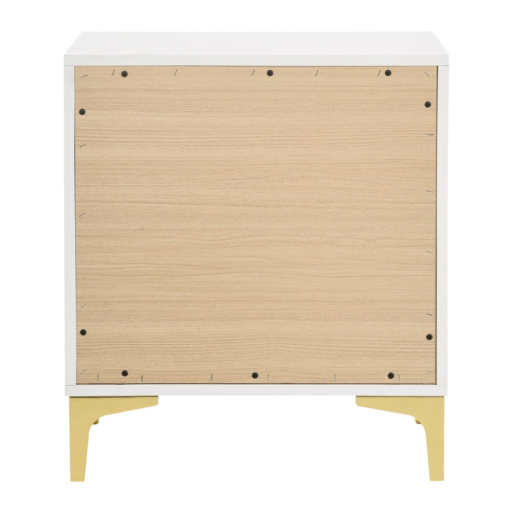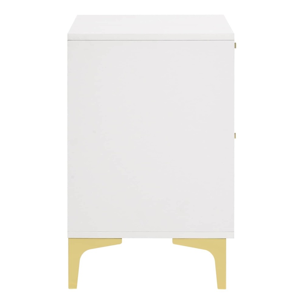 Light up the livability of a casual bedroom with the Karena nightstand in lush white finish Asian hardwoods and wood products with glam gold finish metal accents. Spacious drawers create storage space ideal for sitting bedside or out in a main living area, adding a refreshing palette and a hint of mid-century modern design power.Features:Set includes: One (1) nightstandDimensions: 24.75 inches high x 21.75 inches wide x 15.75 inches deepFinish color: WhiteFinish color: GoldThis product will ship to you in one (1) boxMaterials: Asian hardwood, Asian tropical wood, iron, 3D paper veneer, particle board, LVLDrawer joinery method: English dovetails front and backDrawer glides: Kenlin center drawer glidesNumber of drawers: Nightstand - 2Hardware type: Pull handleGold pull handles and gold Free Shipping Over $49.99* Details Karena White Rectangular 2-Drawer Nightstand Product Description: Light up the livability of a casual bedroom with the Karena nightstand in lush white finish Asian hardwoods and wood products with glam gold finish metal accents. Spacious drawers create storage space ideal for sitting bedside or out in a main living area, adding a refreshing palette and a hint of mid-century modern design power. Features: Set includesOne (1) nightstand Dimensions24.75 inches high x 21.75 inches wide x 15.75 inches deep Finish colorWhite Finish colorGold This product will ship to you in one (1) box MaterialsAsian hardwood, Asian tropical wood, iron, 3D paper veneer, particle board, LVL Drawer joinery methodEnglish dovetails front and back Drawer glidesKenlin center drawer glides Number of drawersNightstand - 2 Hardware typePull handle Gold pull handles and gold bracket style legs