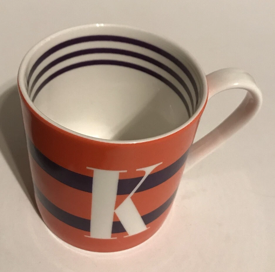 Upgrade your morning coffee routine with this stylish and sophisticated Kate Spade Lenox "K" Letter Porcelain Mug. The 12 oz. capacity allows for a generous pour of your favorite hot beverage, while the round shape and art deco style adds a touch of elegance to your mug collection. Crafted from high-quality porcelain, this mug is both microwave and dishwasher safe for easy cleaning and everyday use. The glossy finish and striped pattern make it a great addition to any kitchen decor, while the printed backstamp and designer theme add a touch of luxury. Perfect for all occasions, this mug is a must-have for any coffee or tea lover.