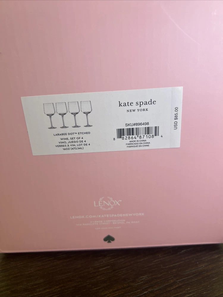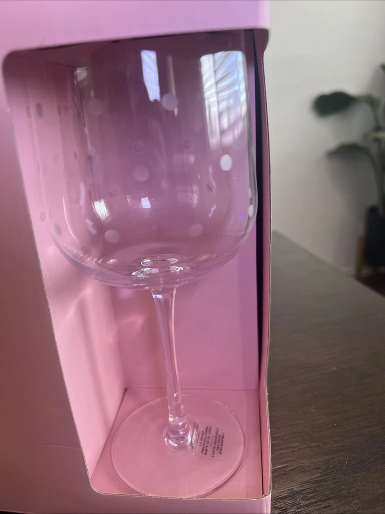 Elevate your wine experience with the Kate Spade x LENOX Larabee Dot Balloon Wine Glasses. This four-piece set boasts a modern round shape with a unique angular bowl design, featuring the iconic Kate Spade logo and a playful white dotted pattern. Crafted from premium glass material, these wine glasses offer a clear view of your beverage, making them perfect for all occasions, from casual gatherings to sophisticated soirees. Each glass has a generous 473 ml capacity and stands at 8.75 inches tall with a width of 3.5 inches, ensuring a comfortable grip and an elegant presentation on any table setting. These glasses are not only designed for durability but also for style, as they are adorned with Lenox's renowned decorations, adding a touch of luxury to your celebratory moments. Hand wash care is recommended to maintain their exquisite beauty.