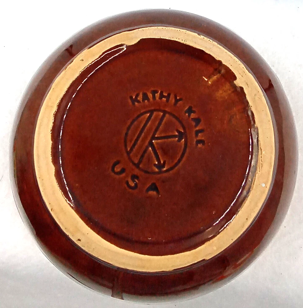 gtin13: Does not apply Antique: No Seller Notes: “Love Kathy Kale Nesting Bowl! Vintage! Pre-owned!” Vintage: Yes Type: Mixing Bowl Style: Mid-Century Modern Handmade: No Production Style: Art Pottery Origin: America Material: Stoneware UPC: Does not apply Theme: Food Backstamp: Impressed Original/Licensed Reproduction: Original Production Technique: Pottery Country/Region of Manufacture: United States Product Line: Brown Drip Department: Adult Brand: Kathy Kale Shape: Round Finish: Glossy Color: Brown Set Includes: Bowl Occasion: All Occasions Pattern: Vintage Features: Oven-Safe