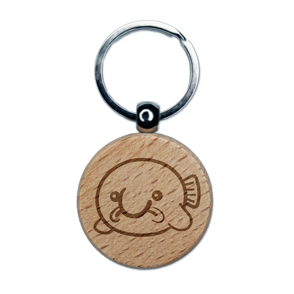 Kawaii Sad Blobfish Engraved Wood Round Keychain Tag Charm