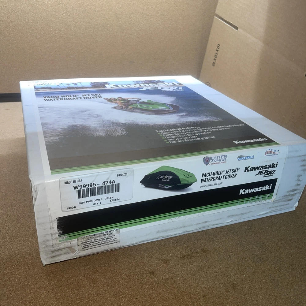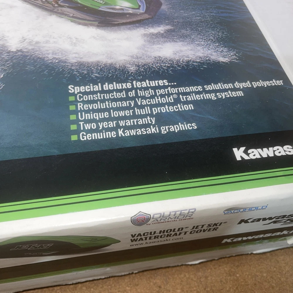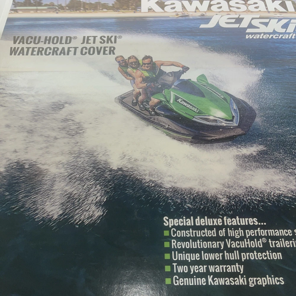 For sale is 1 new OEM Kawasaki Vacu-Hold Watercraft Cover in the sealed box . Vacuum-vented trailering system Lower front hull section protects the front of the craft Constructed of Sur Last® solution dyed polyester Limited 2 year warranty against fading, bleeding, and manufacturer's defects Condition: Brand new genuine Kawasaki Cover. Fits: 2024 Jet Ski® SX-R™ 160 JS1500ARFNN 2023 Jet Ski® SX-R™ JS1500APFNN 2022 Jet Ski® SX-R™ JS1500ANFNN 2021 Jet Ski® SX-R™ JS1500AMFNN 2020 Jet Ski® SX-R™ JS1500ALF 2019 Jet Ski® SX-R™ JS1500AKF 2018 Jet Ski® SX-R™ JS1500AJF 2017 Jet Ski® SX-R™ JS1500AHF