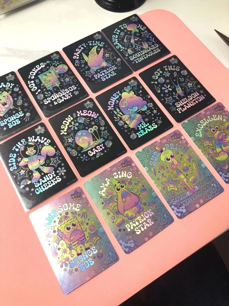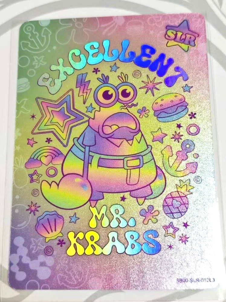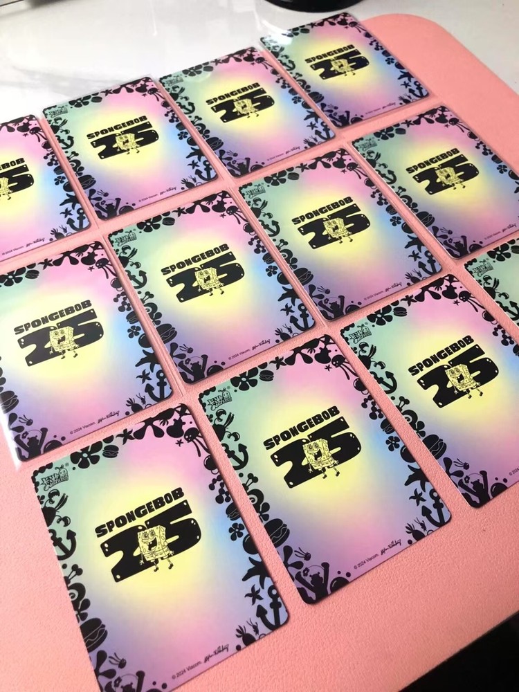 Kayou launcheed SpongeBob Squarepants' 25th anniversary theme collection card at 2024. There are 165 cards in the series, divided into 11 levels of rarity. Dream Gift Card: XR OR Exquisite Wonderland Card: OR Magic emanation Card: UGR Sweet & delicacies card: SCR Happy note card: STR Anniversary Card: SLR Colorful Holiday Card: SSR Draw Character Card: SR Changing Face Art card: FR Funny Feature card: R All the cards sold are almost new, look flawless on the surface, and default to minor damage or minor imperfections on display