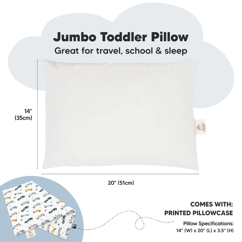 KeaBabies Toddler Pillow with Pillowcase, Jumbo 14X20 - Soft Organic Cotton Toddler Pillows for Sleeping - Machine Washable - Perfect for Travel, Toddler Bed Set (Racecars)