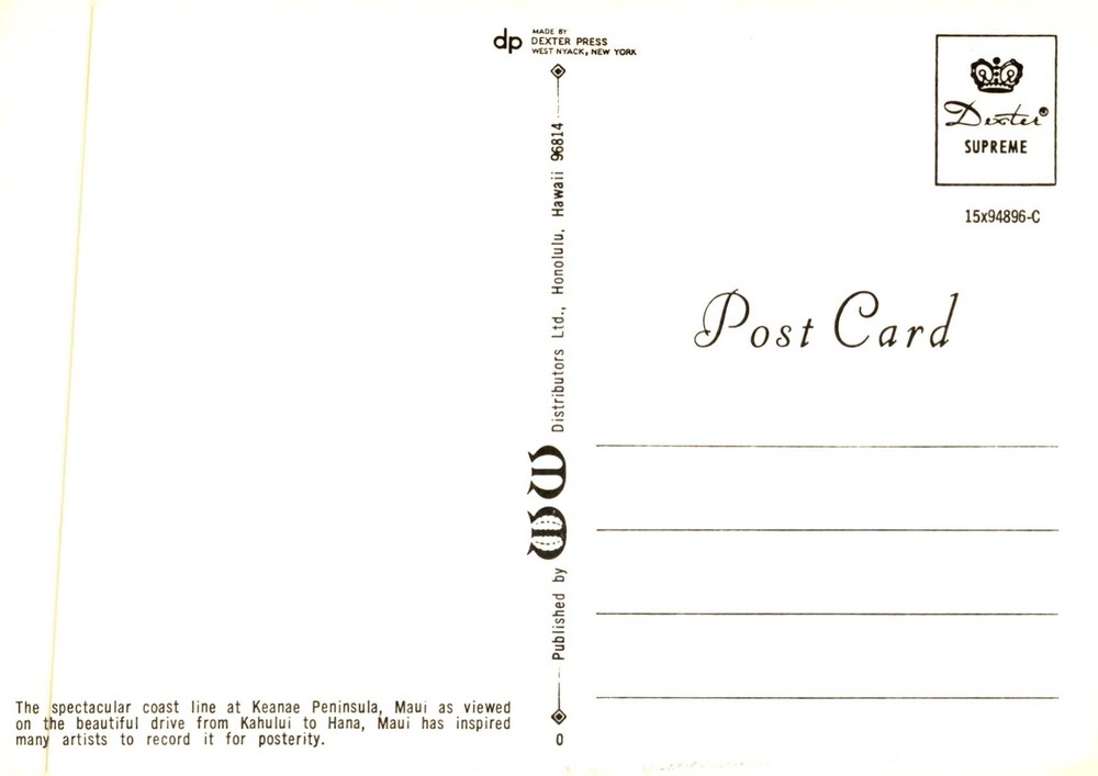$ 10.54Keanae, Maui Shoreline with Diamond Crest, 1979 Postcard