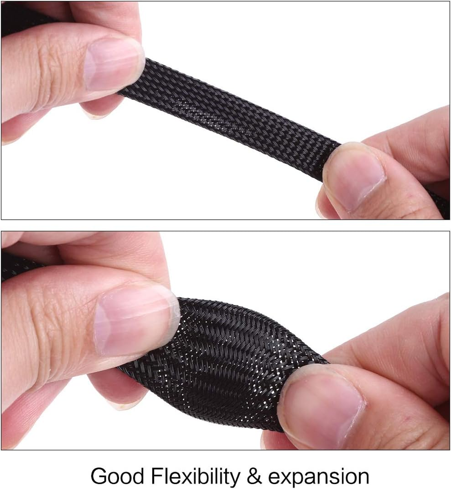 This expandable braided cable sleeve is a game-changer for organizing messy wires! It's super flexible, easy to cut to size, and gives a clean, professional look to audio, automotive, or home setups. The PET material feels durable yet lightweight, and the black color blends seamlessly. No fraying or annoying snags during installation—just smooth, hassle-free cable management. Perfect for DIY projects, and 100ft gives plenty to work with. Highly recommend for anyone tired of tangled cords!