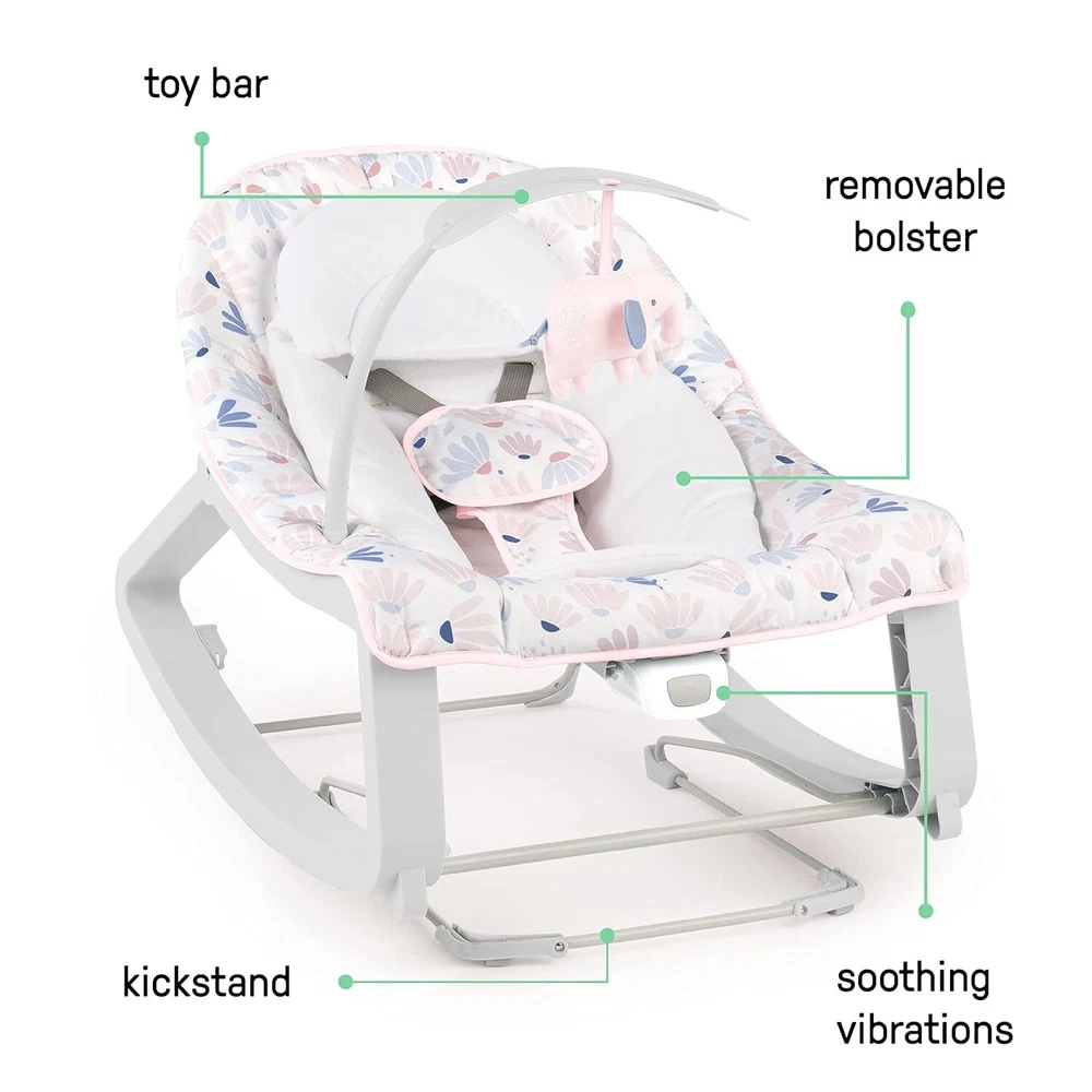 Product Description Keep Cozy 3-in-1 Grow with Me Vibrating Baby Bouncer Seat & Infant to Toddler Rocker, Vibrations & -Toy Bar, 0-30 Months Up to 40 lbs (Pink Burst) 54% Plastic, 27% Metal, 19% Polyester The Keep Cozy Baby Bouncer, Rocker & Toddler Seat has 3 modes for parent convenience and baby preference: bouncing, rocking, and stationary seat (kickstand at the rear of the chair) Neutral unisex design blends with your home décor; gives infants and toddlers up to 40 pounds a seat with the family; grow-with-me design ages up from 0-30 months Use the cozy infant bolster to give newborns extra support and comfort; easily remove the bolster when baby outgrows it; 2 reclining positions keep baby comfortable Soothing vibrations help to keep baby calm; includes 1 detachable plush elephant playtime toy for entertaining and to practice reaching and grasping; vibrations powered by 1 C battery (not included) About Us We are a reputable seller with many years of experience selling on eBay. Our goal is to provide high-quality products and excellent customer service. Shipping Items will be shipped within 1-3 business days when we received payment. (Orders are not processed on weekends & holidays) Tracking information will be sent once item is shipped. Delivery time depends on destination and other factors Item is shipped to ebay address. Leaving correct address can minimize delay. For international shipping and shipping to Guam, Hawaii and Alaska, Please contact us before placing the order. International buyers please note: Import duties, taxes and charges are not included in the item price or shipping charges. These charges are buyer’s responsibility. We will try our best to reduce the risk of the custom duties. Local pick-up is unavailable at the moment. Contact Us We reply any email messages within 1 business / working days(off-duty at weekend). If you do not get a response from us, then please check your junk or spam mailbox. Our Business hours: Mon-Fri 9:00-18:00, UTC/GMT +8 hours. Please contact us either by clicking "contact seller" in the "purchase history" section or simply click "ask a question" at the bottom of this page. If you are unsatisfied with our item or service, please contact us before leaving any feedback. We are committed to resolve all issues in a friendly and satisfactory manner.