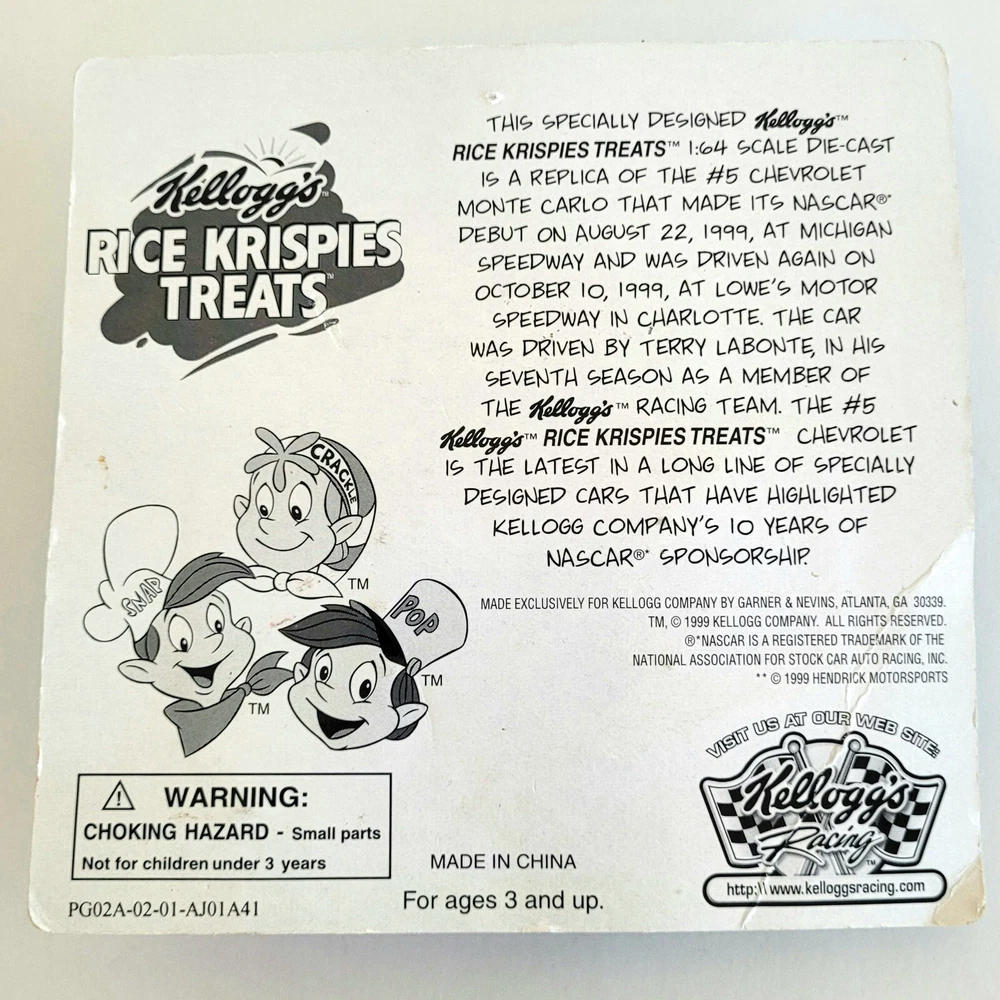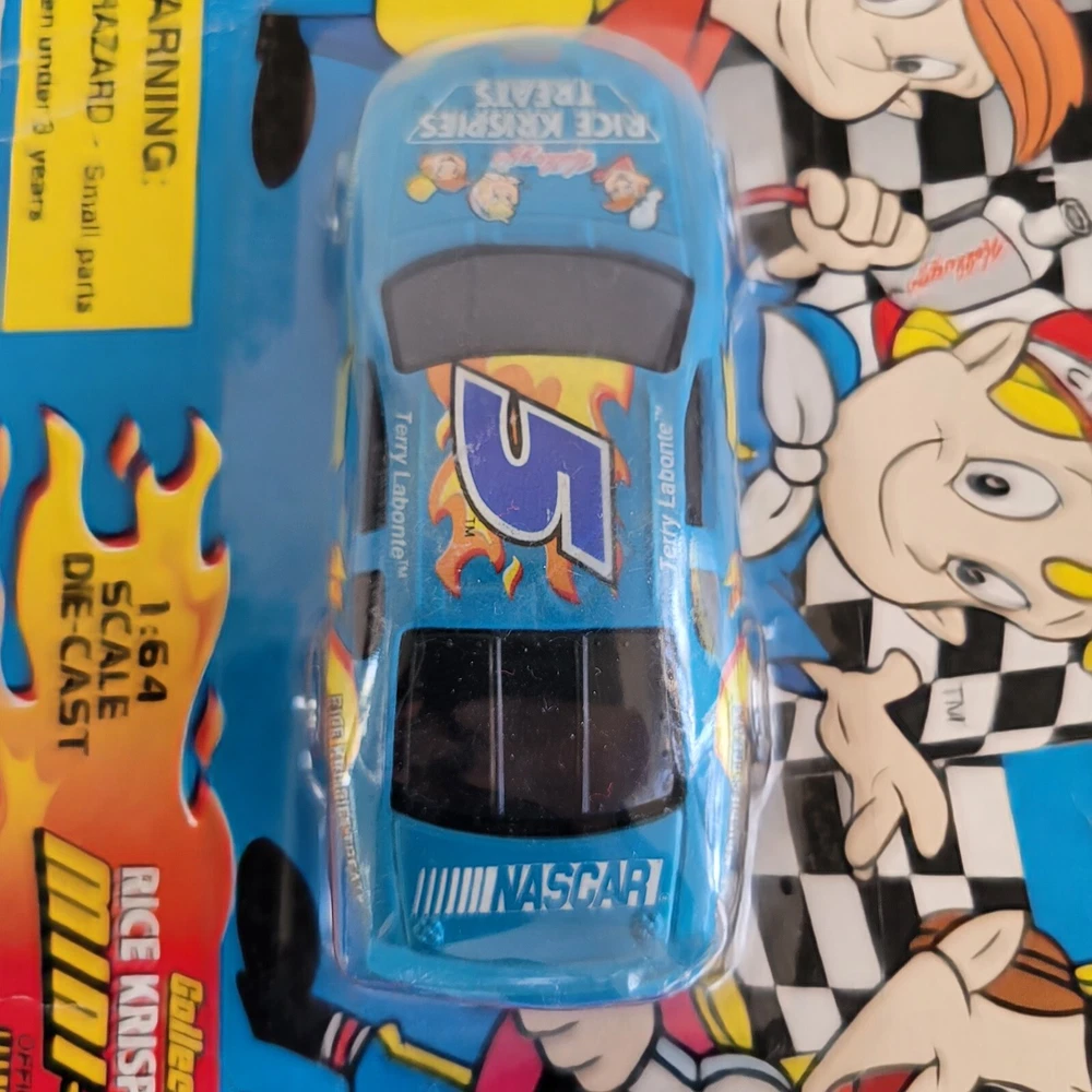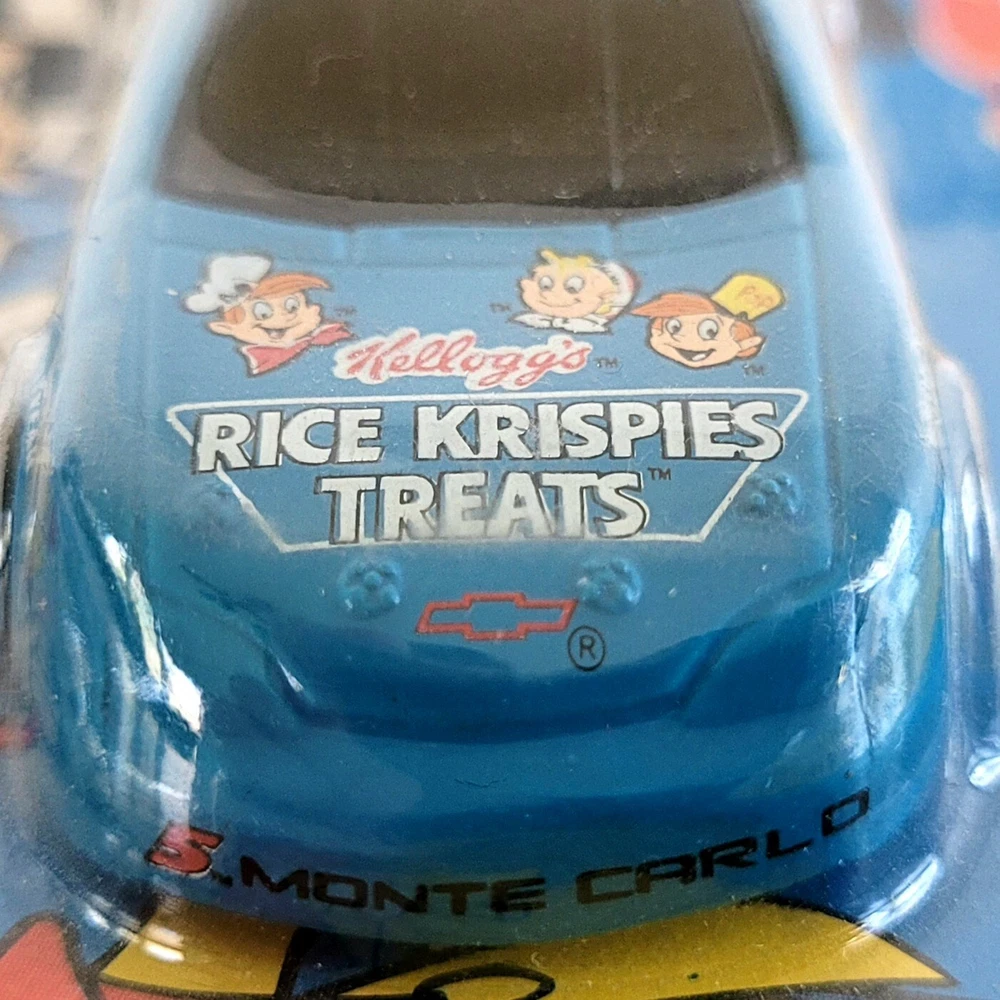 The Kellogg's Rice Krispies Treats 1:64 Scale Die-Cast NASCAR Collectors Race Car features a Chevrolet Monte Carlo driven by Terry Labonte in 1999. This collector's item is in the form of a blue NASCAR racecar with Kellogg's branding, part of the Hot Wheel Mini-Car series, and is unopened in its original box. It is a diecast model made in China, suitable for ages 3 and up, and belongs to the character family of Rice Krispies made exclusively for Kellogg Company. This item has been kept in a smoke-free and pet-free environment. Please look closely at all the photos attached. Should you have any questions, please do not hesitate to contact me through ebay. Thank you.