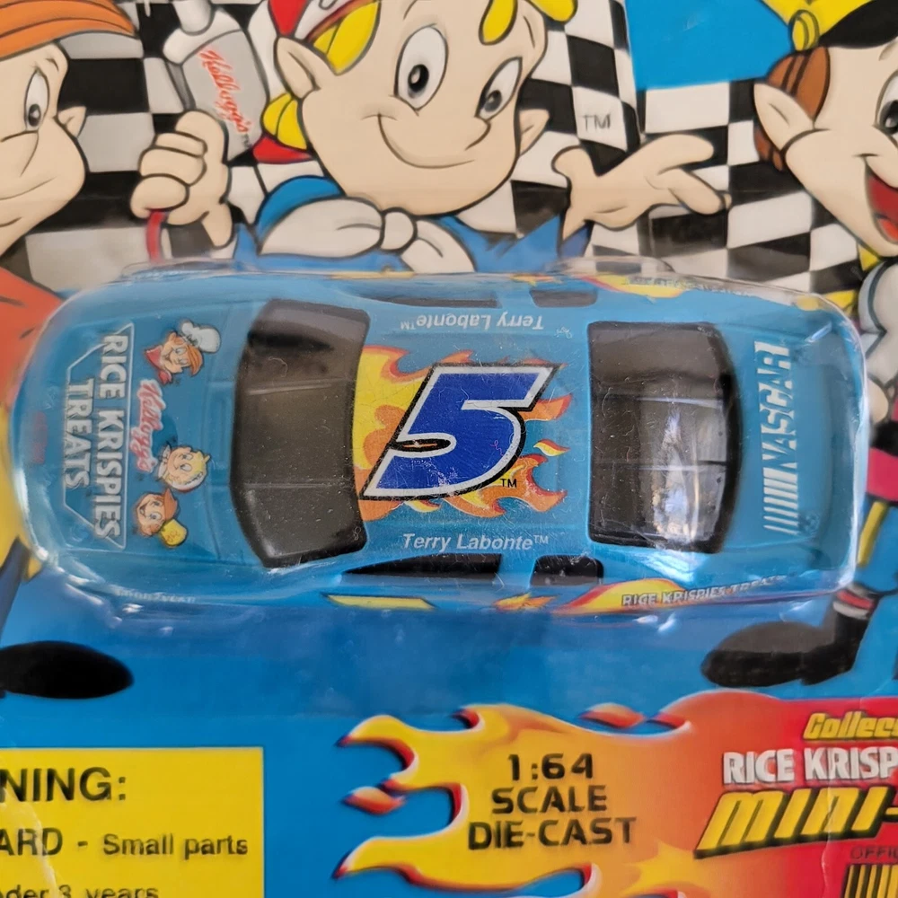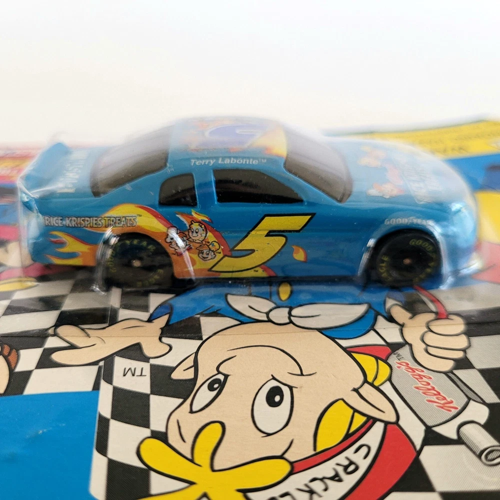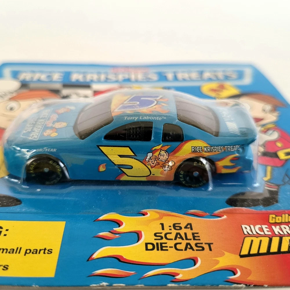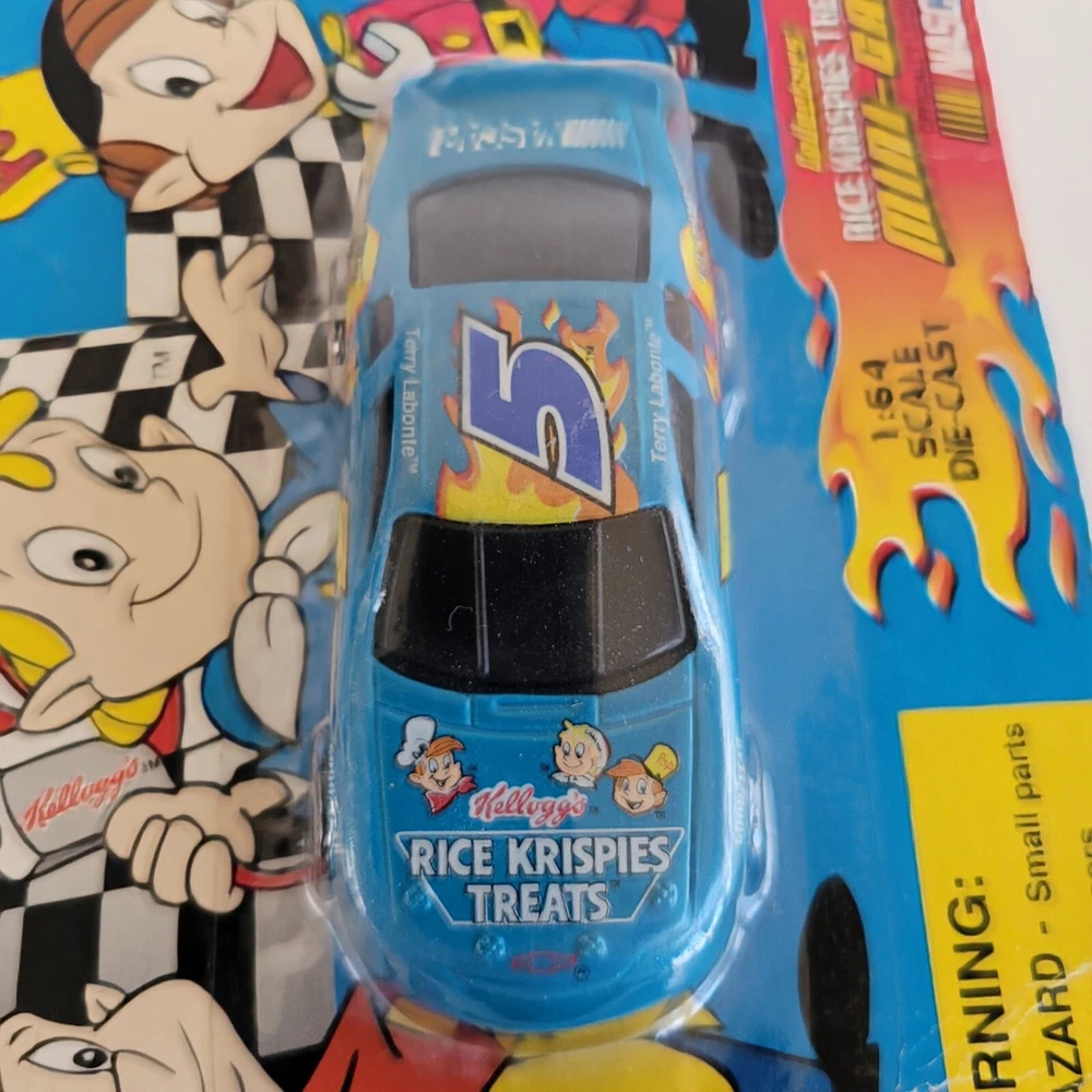 The Kellogg's Rice Krispies Treats 1:64 Scale Die-Cast NASCAR Collectors Race Car features a Chevrolet Monte Carlo driven by Terry Labonte in 1999. This collector's item is in the form of a blue NASCAR racecar with Kellogg's branding, part of the Hot Wheel Mini-Car series, and is unopened in its original box. It is a diecast model made in China, suitable for ages 3 and up, and belongs to the character family of Rice Krispies made exclusively for Kellogg Company. This item has been kept in a smoke-free and pet-free environment. Please look closely at all the photos attached. Should you have any questions, please do not hesitate to contact me through ebay. Thank you.