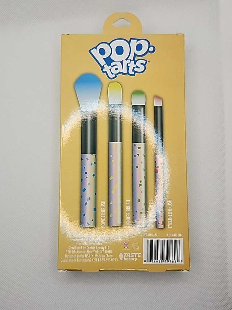 Rare!! Brush collaboration with Taste Beauty SEE PHOTOS! STILL IN BOX Kellogs Pop Tarts 4 Piece Cosmetic Brush Set Includes: Powder Brush Blender Brush Shadow Brush & Eyeliner Brush
