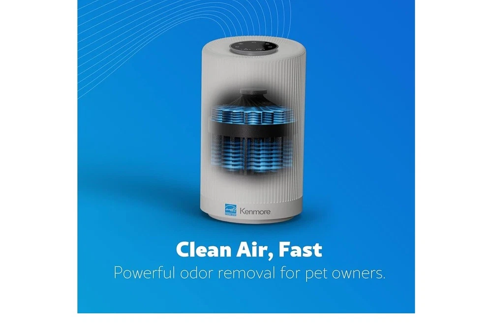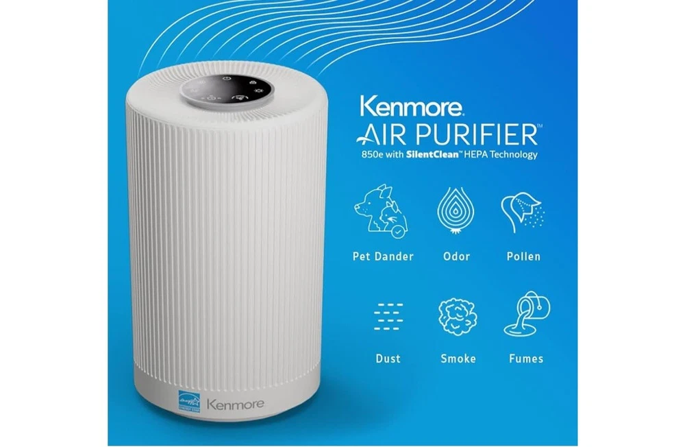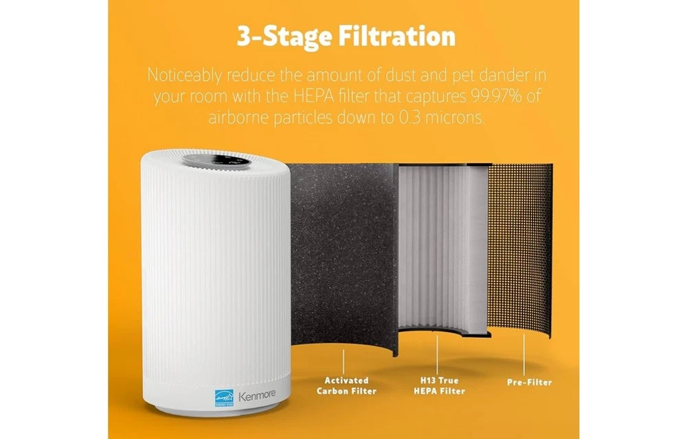 Keep the air in your home clean with the Kenmore PM1005 Air Purifier. This device features a True HEPA filter that covers up to 850 square feet and weighs only 5.8 pounds. The white color and sleek design make it a stylish addition to any home décor. The Kenmore brand is known for its quality products, and this air purifier is no exception. With its advanced filtration technology, it captures 99.97% of airborne particles, including allergens and dust mites. The package dimensions are 15.98x9.57x9.45 inches, making it easy to move around furniture or place in a larger room. Improve the air quality in your home with the Kenmore PM1005 Air Purifier.