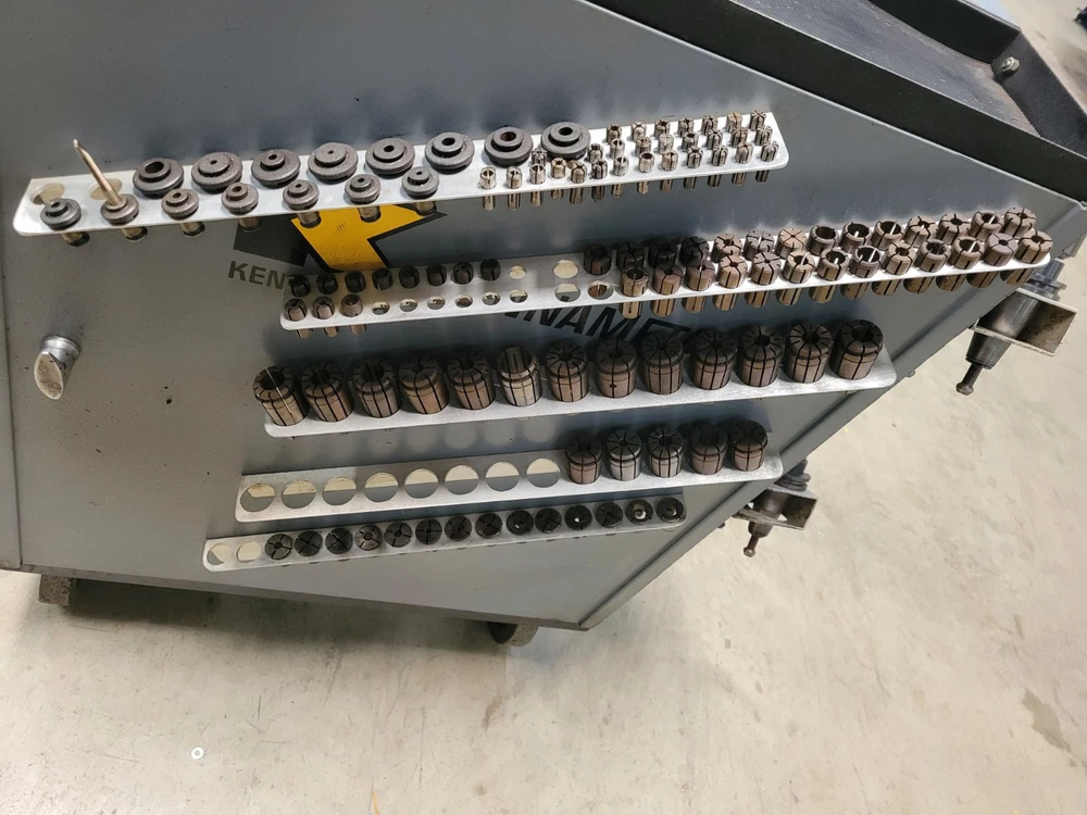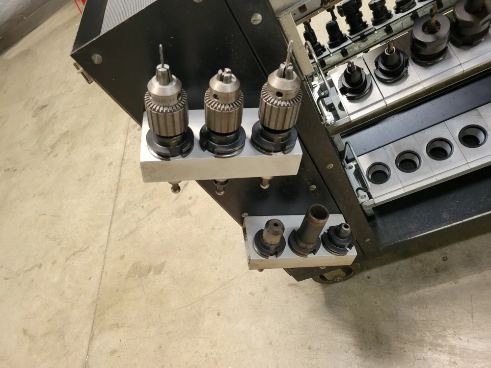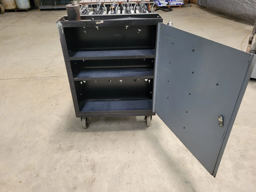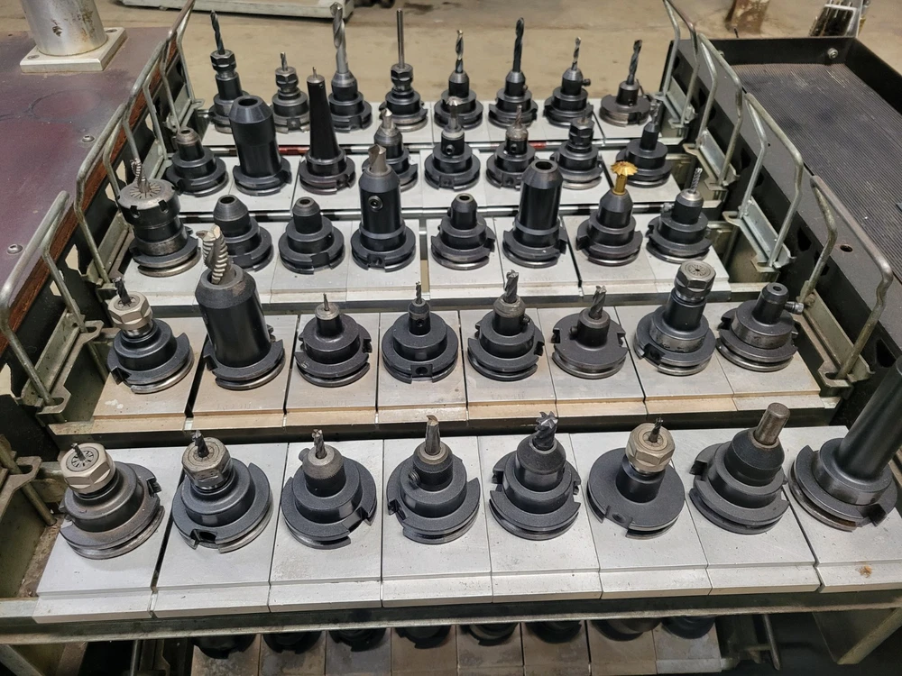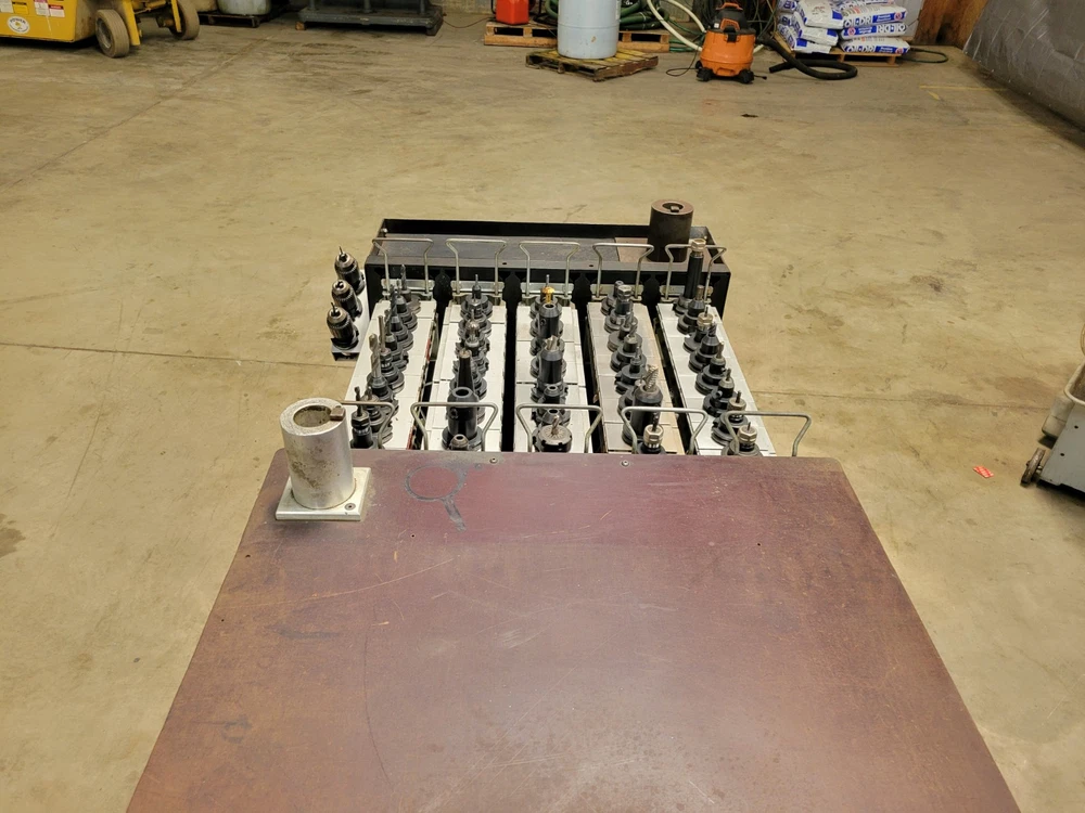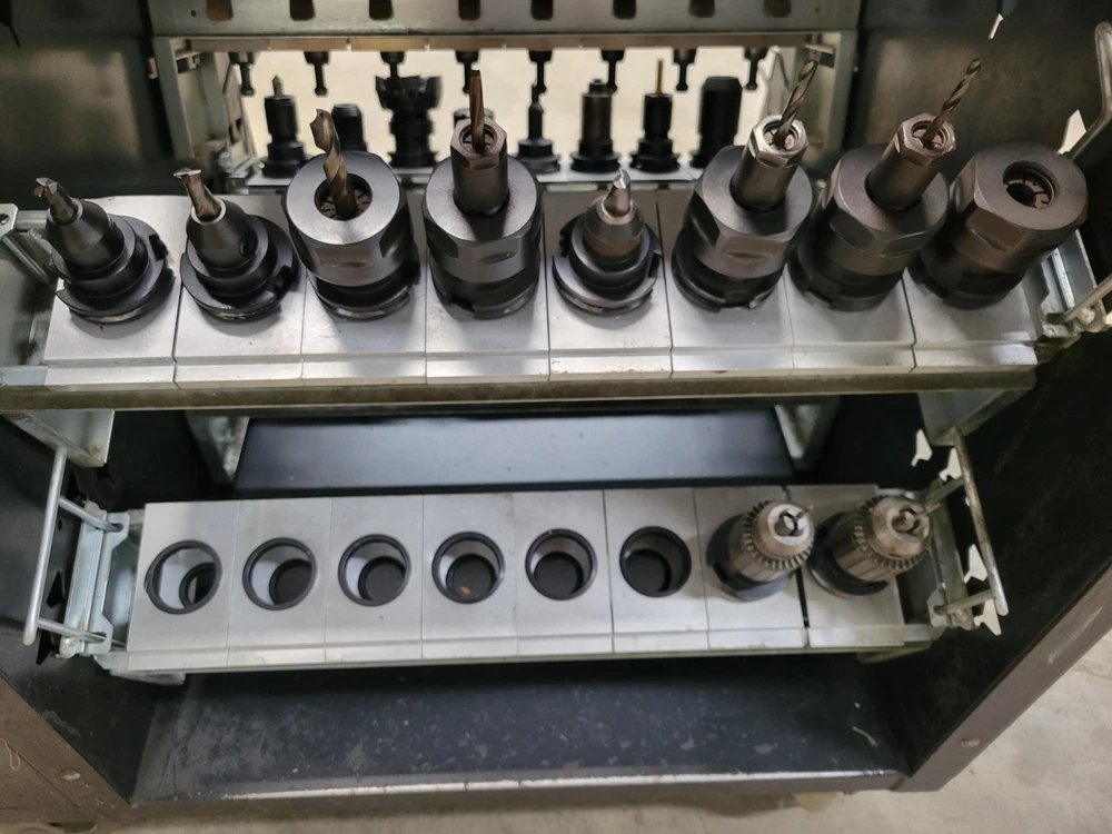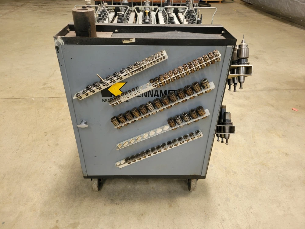 Welcome to Select Machine Tool Very heavy-Duty Kennametal CNC tool cart. Cart comes with 72 CAT40 Tool holders with collets and tools. This cart is much sturdier than the new model carts. Cart also has custom holders for collets and holders. Also comes with a cabinet for storage of other tooling and accessories. 72 CAT40 Tool holders the brand names are: 39 Kennametal Holders 6 Accupro Holders 3 HAAS Holder 10 No-name Holder 2 Parlec Holder 5 Ericson Holders 4 Fitz-Rite Holders 2 Tapmatic Holders 1 Valenite Holder Along with the 72 Holders and tooling comes extra collets. These collets include the following: 15 Quick change Tap Adapters 18 TG100 Collets 14 DAK Series Tap Collets/Double Angle Kennametal Brand 27 DA100 Collets Ericson Brand 29 DA300 Collets Ericson Brand 11 DAJ series Collets Kennametal Brand STOCK #45050 FREIGHT QUOTE AVAILABLE When you buy from Select Machine you are not only buying from a reputable dealer but also a sales and service staff with well over two hundred years of combined experience. We want you to be happy and we also want to help you in any way possible. So if you have a question or are looking for something special please call or e-mail us so that we may earn your business. We want to build relationships with our customers and the best way to do that is by providing quality products, honest representations, value, and service. Again, we want to thank you for your time and interest and we look forward to earning your business in the near future. If you have any questions, please e-mail us, and we will try to reply within 24 hours. Thank You for stopping by and please view our other items. FOR ALL OF YOUR AIR, TOOLING, AND MACHINING NEED